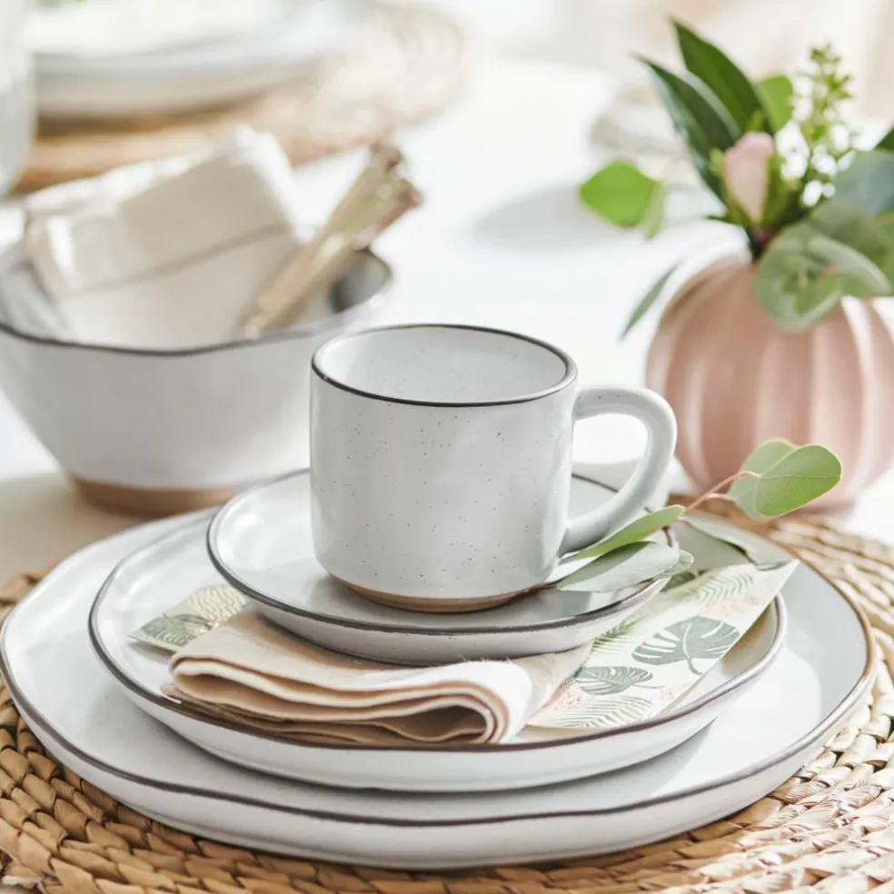 Ein reizendes, großes Set aus dreißig Teilen mit ganz ursprünglichem Charme. Das schicke Geschirr ist bewusst uneben designt, was ihm eine handgemachte Anmutung gibt. Es besteht aus Steinzeug mit handgetöpferter Optik. Der Boden ist bei allen Elementen unglasiert. Besonders bei den Schüsseln ist das sehr gut zu sehen. Diese unbearbeitete Seite macht das ganze Set noch reizvoller. Diese natürliche, mediterrane Note sorgt für Urlaubsgefühle. Hiermit ist Ihre Tafel immer perfekt passend und harmonisch eingedeckt. Das große Set ist ideal für Mahlzeiten mit Freunden und Familie in geselliger Runde. Enthalten sind sechs Abendessenteller, sechs Beilagenteller, sechs Tassen, sechs Unterteller und sechs Schüsseln. Vom Kaffee am Morgen bis zu Brunch und Frühstück, einem leichten Salat am Mittag, Obst und Käse als Snack, Kaffee und Kuchen am Nachmittag bis hin zum Dinner am Abend sind Sie hiermit bestens ausgestattet. Kleinere Sets dieses hochwertigen Geschirrs, wie zum Beispiel ein Set aus sechs Tellern oder ein Set aus sechs Tassen samt Untertassen, können Sie ebenfalls separat hier im Shop bestellen. Suchen Sie einfach nach unserer Biarré-Geschirrreihe. Wir wünschen guten Appetit.