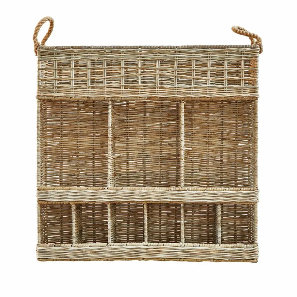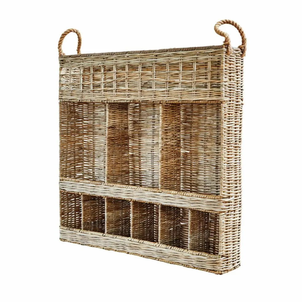 Dieses Gewürzregal bringt natürliche Wärme und praktischen Nutzen in Ihre Küche. Gefertigt aus handgeflochtenem Rattan, zeichnet es sich durch seine feine Struktur und dezente Farbgebung aus. Die Griffe aus Jute setzen stilvolle Akzente und erleichtern die Handhabung. Mit mehreren Fächern bietet das Regal ausreichend Platz für Gewürze, kleine Vorräte oder Küchenutensilien. Dank der schmalen Form empfiehlt sich die Montage an der Wand, um einen stabilen Stand zu gewährleisten und wertvollen Platz auf der Arbeitsfläche zu sparen. Ob als funktionales Element oder dekorativer Blickfang – dieses Regal verbindet durchdachtes Design mit natürlicher Ausstrahlung.