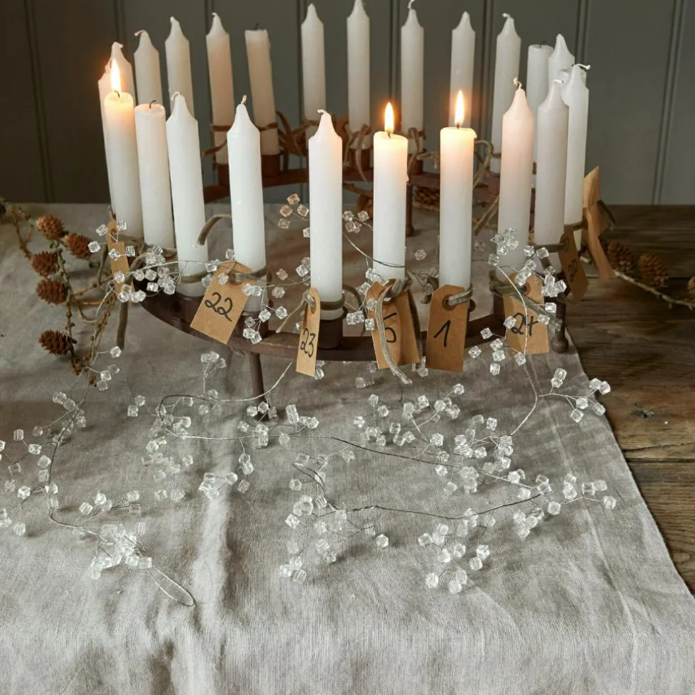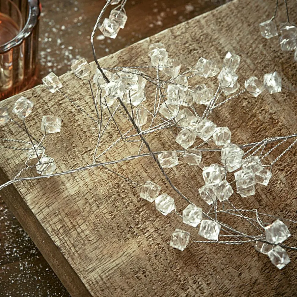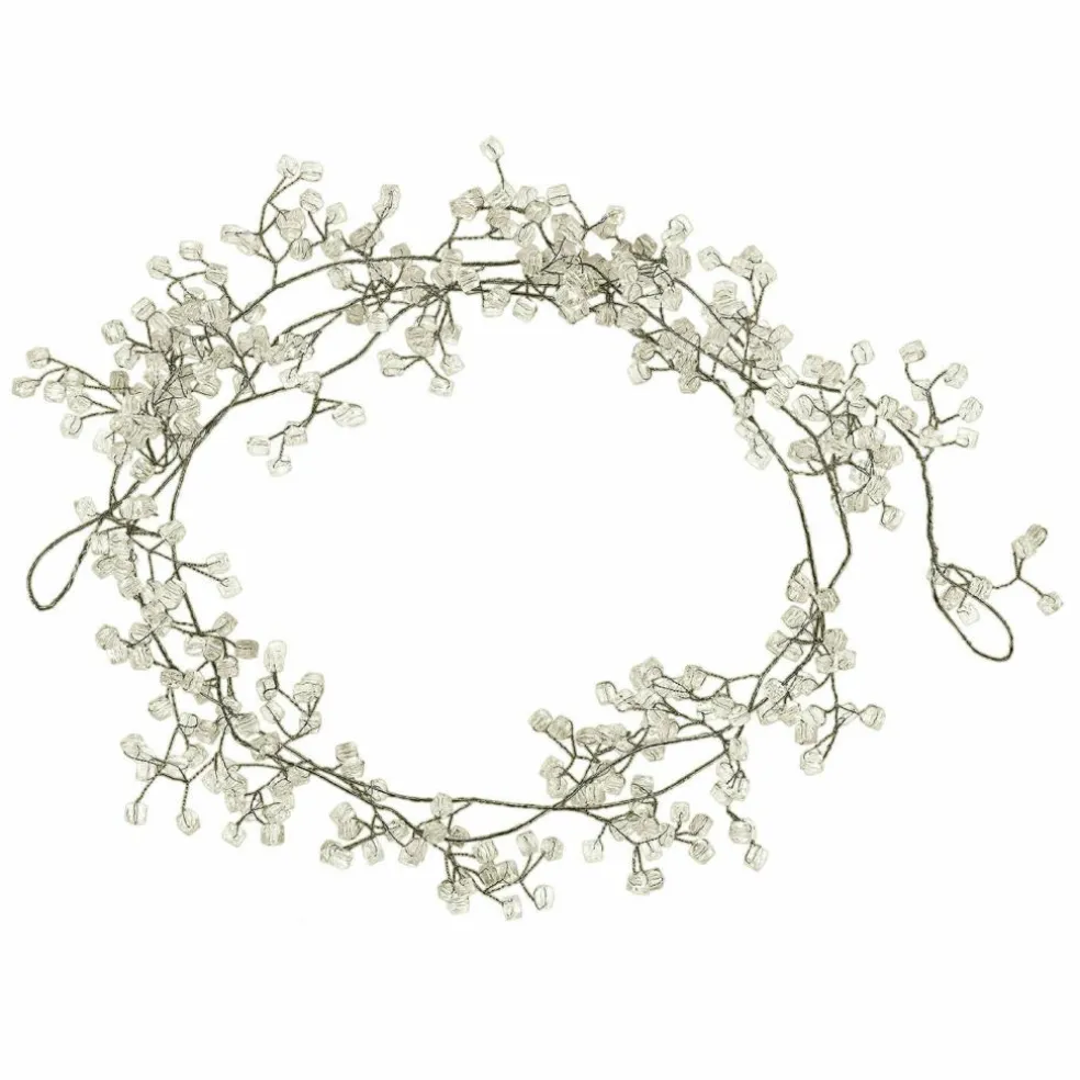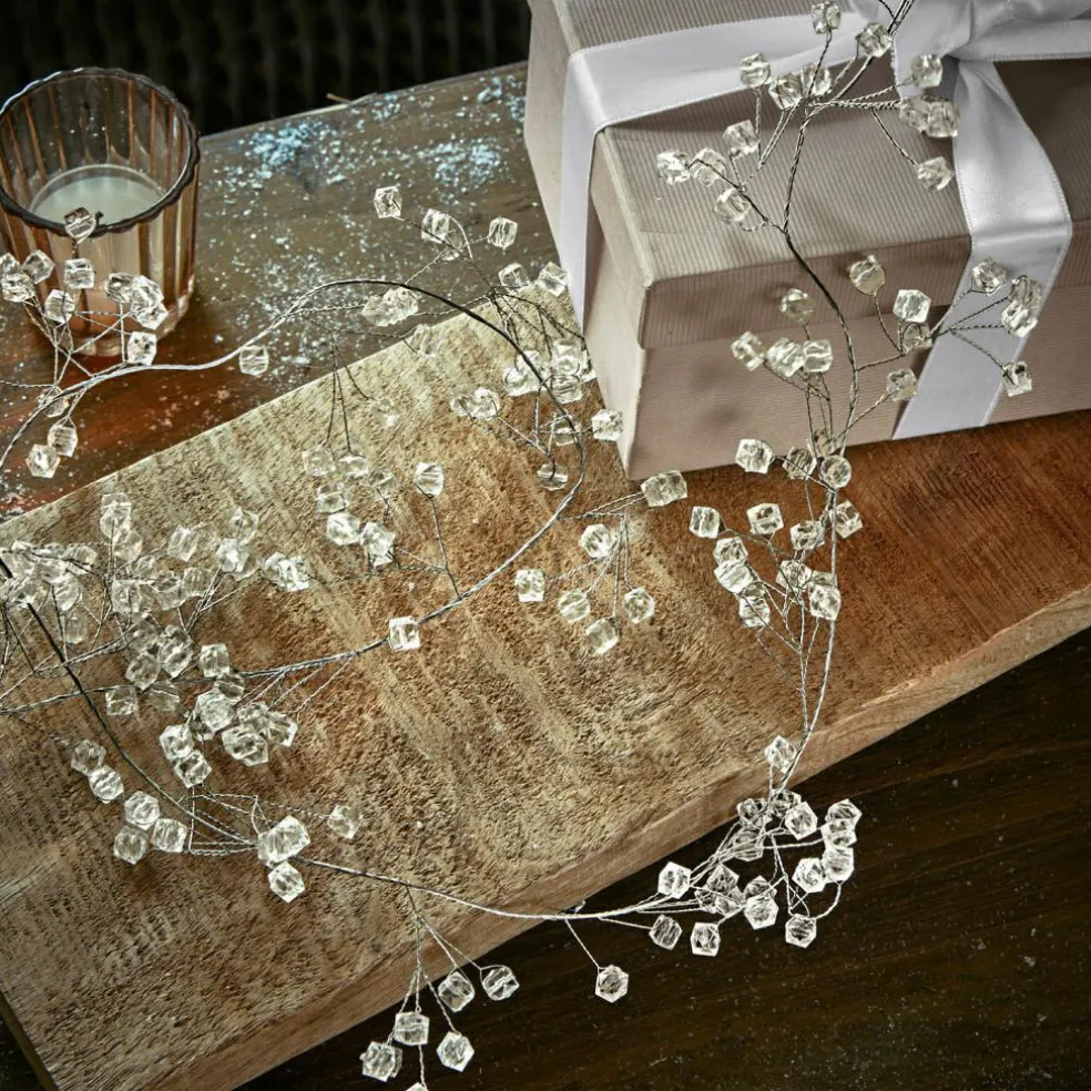 Wie aus dem Winter Wonderland – diese hübsche und filigrane Girlande gefällt mit feiner Eiskristall-Optik, die durch quadratische Acrylperlen entsteht. Die Perlen sind auf einem flexiblen Draht aus Eisen aufgefädelt, sodass diese schicke Girlande biegsam ist und sich überall nach Belieben drapieren lässt. Ob am Fenster, am Weihnachtsbaum oder am Bettgestell, hiermit wird es winterlich schön. Das stilvolle Design harmoniert mit jedem Ambiente und verschönert die kalte Jahreszeit. Auch ein Adventskranz lässt sich hiermit stilvoll veredeln – der Deko-Lust sind hier keine Grenzen gesetzt. Und natürlich ist die Girlande nicht nur eine Freude im Winter, sondern das ganze Jahr hindurch.