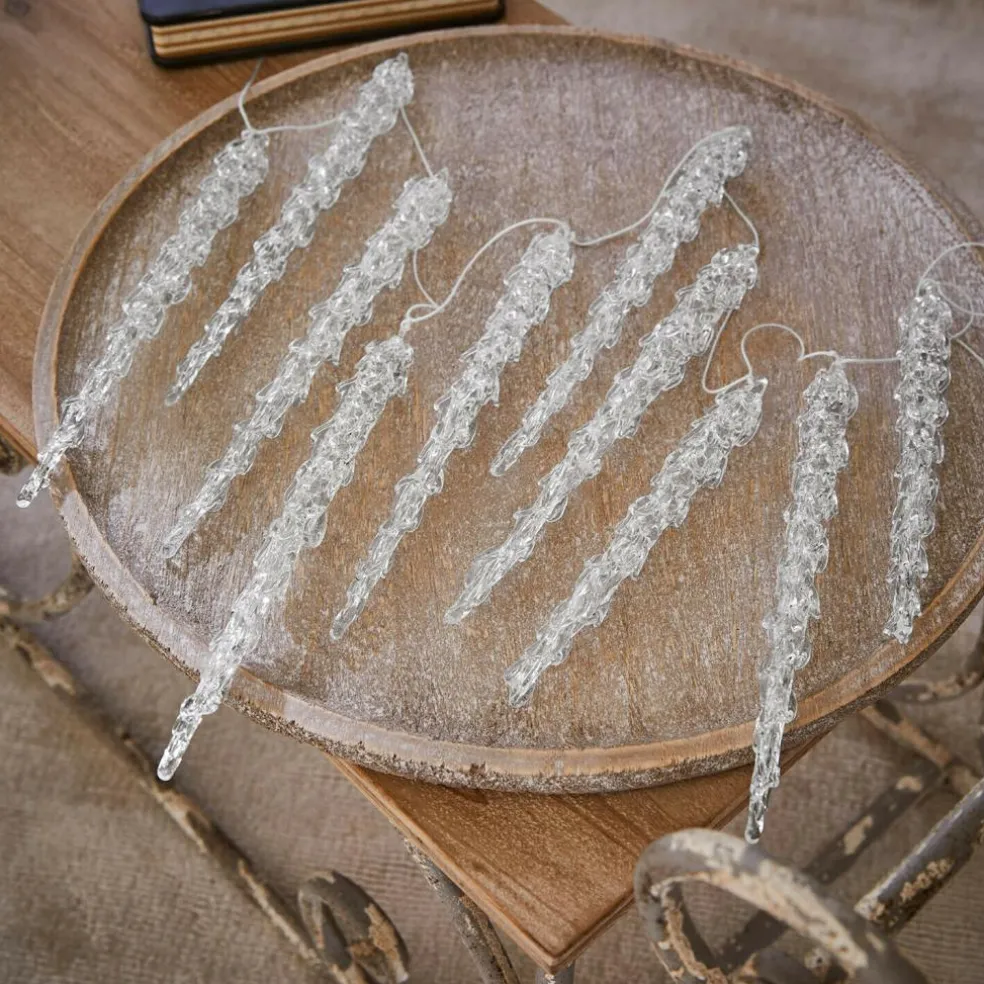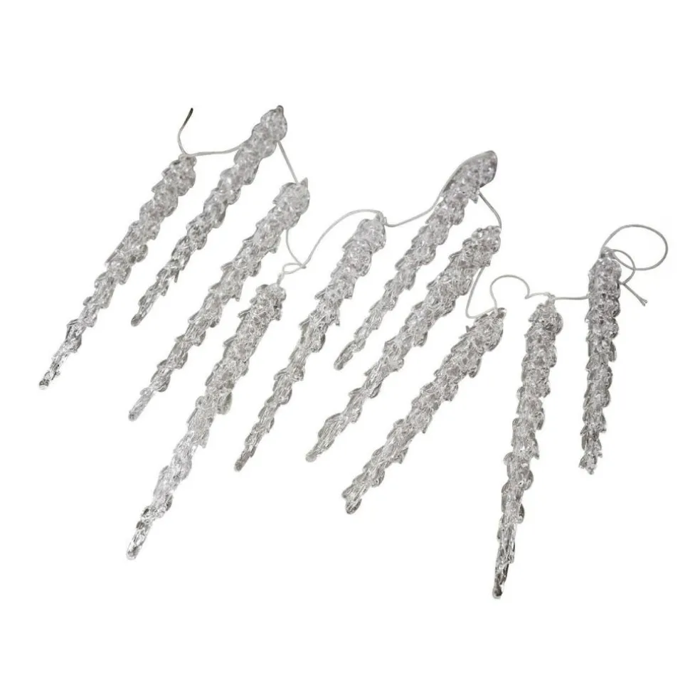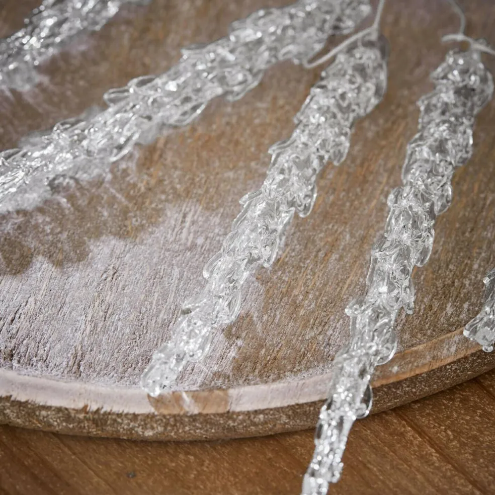 Wenn der Winter Einzug hält und die Natur in Eiskristallen schimmert, fängt diese Girlande genau diese Magie ein: Jeder einzelne Eiszapfen besteht aus aufwendig geformtem Glas – mit unregelmäßiger Tropfenstruktur und faszinierender Tiefe. Das transparente Material reflektiert das Licht auf besonders stimmungsvolle Weise, sodass ein sanftes Glitzern durch den Raum tanzt. Ob am Fenster, über dem Kamin oder als zarter Baumschmuck – diese Girlande verleiht Ihrer Winterdekoration etwas Poetisches.