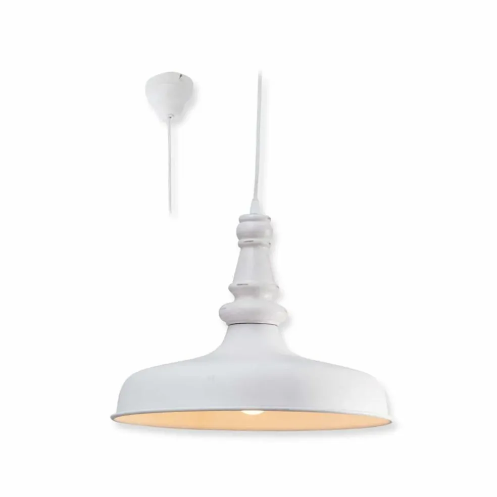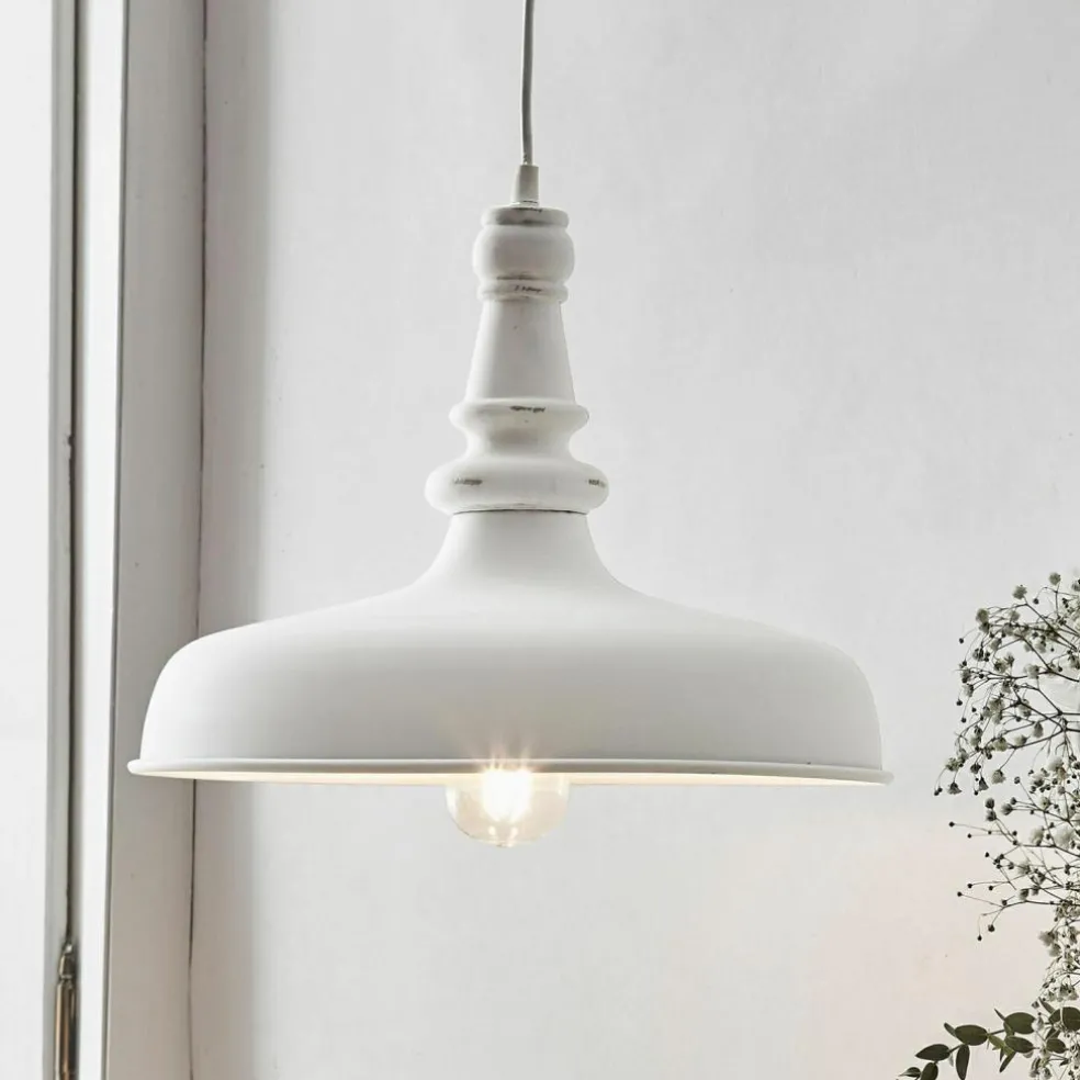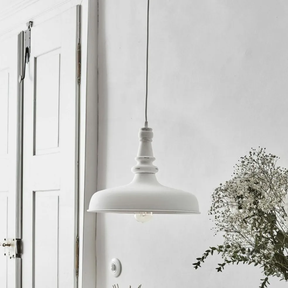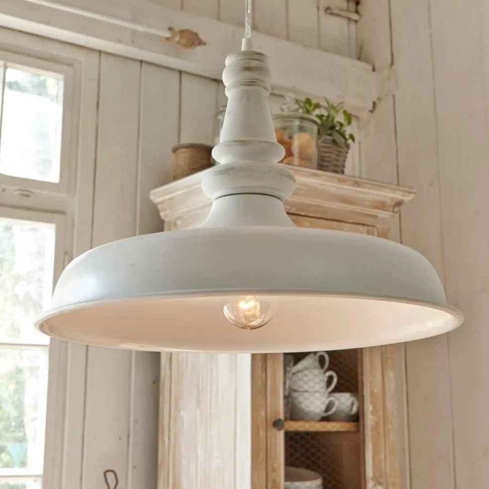Die attraktiven, weichen Formen, der fließende Charakter und das charmante Antik-Finish machen diese Hängeleuchte zu einer klassischen Schönheit. Der Schirm ist aus reinem Eisen geformt und schonend lackiert, ein gedrechselter Abschluss aus natürlichem Mangoholz bildet die Krönung. Die Oberflächenveredelung verleiht dem bezaubernden Lichtspender einen authentischen Vintage-Charme, der sich in Küche und Esszimmer besonders gut macht.