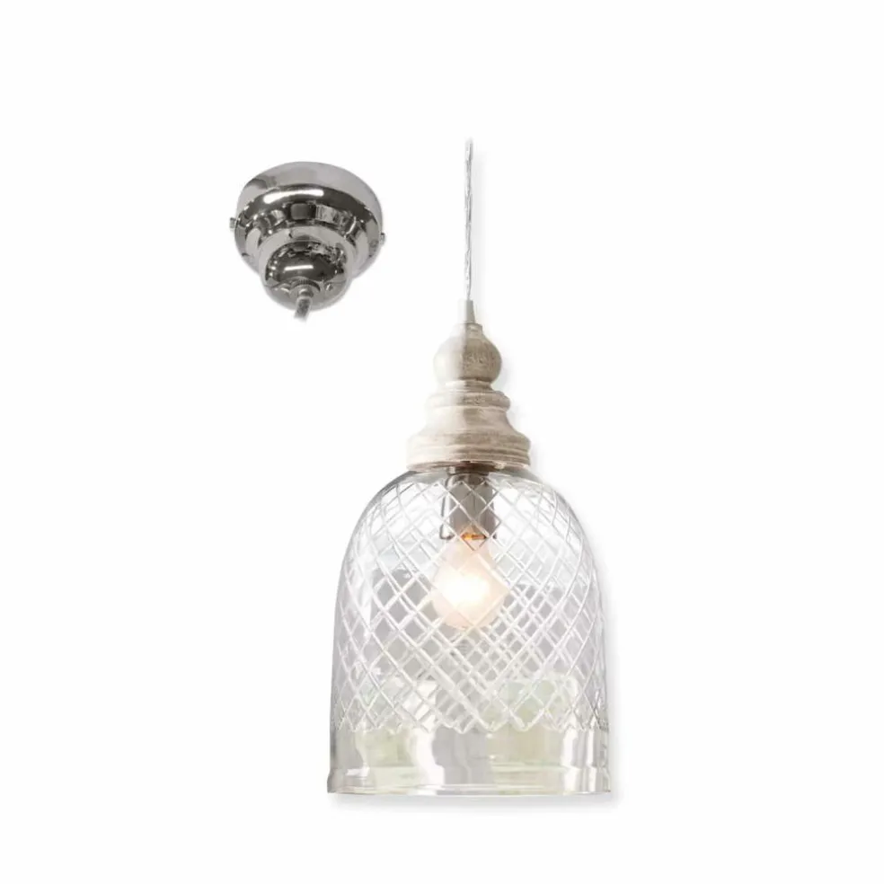 Funkelnde Lichtblicke bringen Sie mit dieser wunderschönen Hängeleuchte in Ihr Zuhause. Der Lampenschirm besteht aus klarem Glas. Durch das stilvolle Rautenmuster auf dem gläsernen Schirm entsteht eine einzigartige Lichtwirkung. Auch bei ausgeschaltetem Licht schmeichelt es dem Blick. Die Fassung der Leuchte besteht aus echtem Mangoholz. Der Kontrast der Materialien ergibt ein traumhaftes Gesamtbild. Durch das luftig-leichte Design der Lampe fügt sich dieses bildhübsche Wohn-Accessoire wunderbar in den Raum ein. Ob zu Interieur im Landhaus-Stil, Country-Chic oder klassischer Inneneinrichtung mit hellen oder dunklen Möbelstücken – diese detailverliebte Zierde wird Sie einfach verzücken. Unsere Idee: Über einem Esstisch mit naturbelassenem oder gewischtem Holz im Ton der Mangoholz-Fassung entfaltet die Lampe ihre charmante Wirkung ganz wunderbar. Ein vielseitig einsetzbares Highlight für Ihre vier Wände.