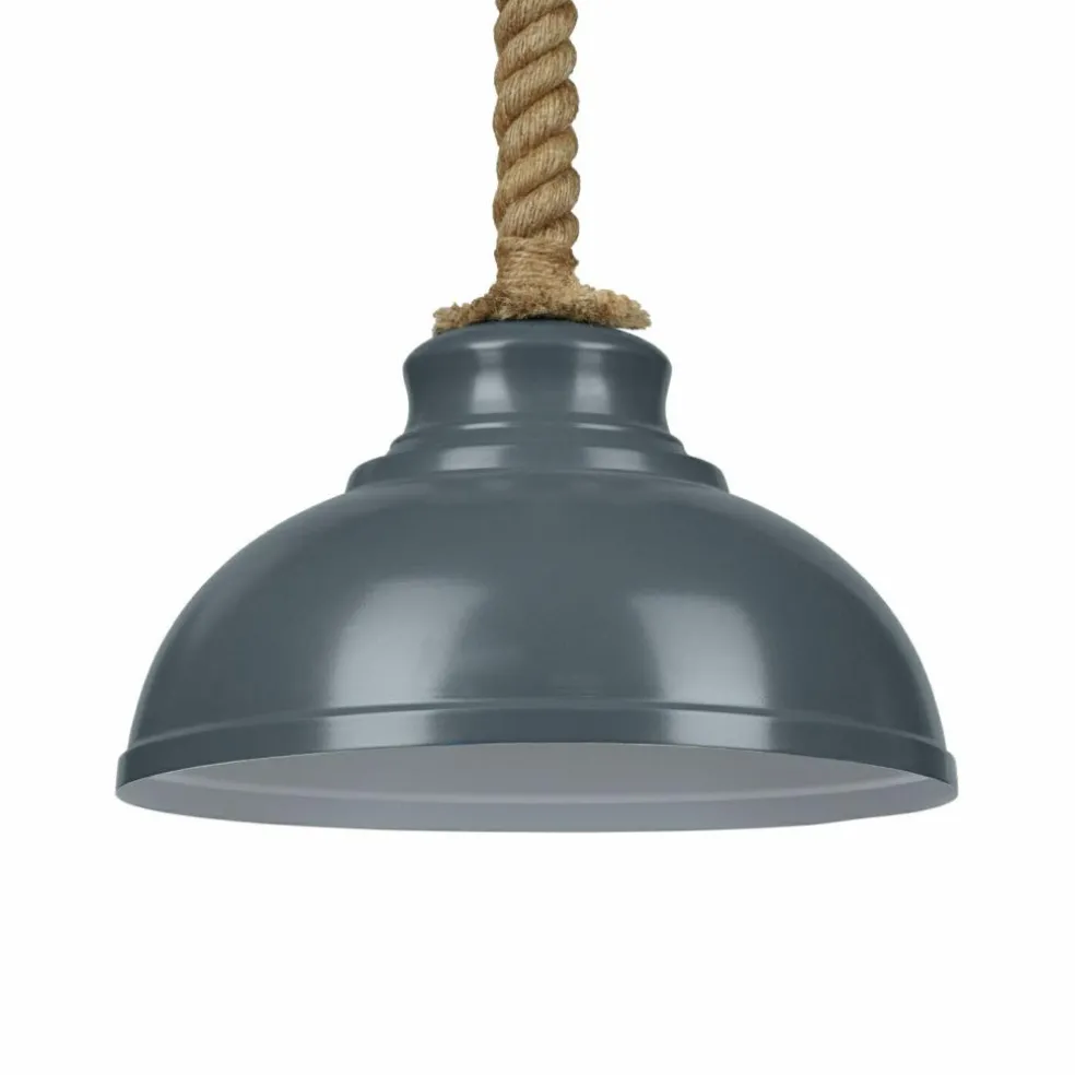 Verleihen Sie Ihrem Zuhause ein Hauch von Küstencharme mit dieser einzigartigen Hängelampe im maritimen Stil. Der Schirm und Baldachin aus robustem Eisen in stilvollem Blau harmonieren perfekt mit dem dicken, natürlichen Seil, das der Lampe eine rustikale und zugleich elegante Note verleiht. Diese Lampe schafft nicht nur im Wohnzimmer, sondern auch im Kinderzimmer eine abenteuerliche und gemütliche Atmosphäre. Die hochwertige Verarbeitung sorgt für eine langlebige und ansprechende Beleuchtungslösung, die jedes Zimmer in ein maritimes Paradies verwandelt.