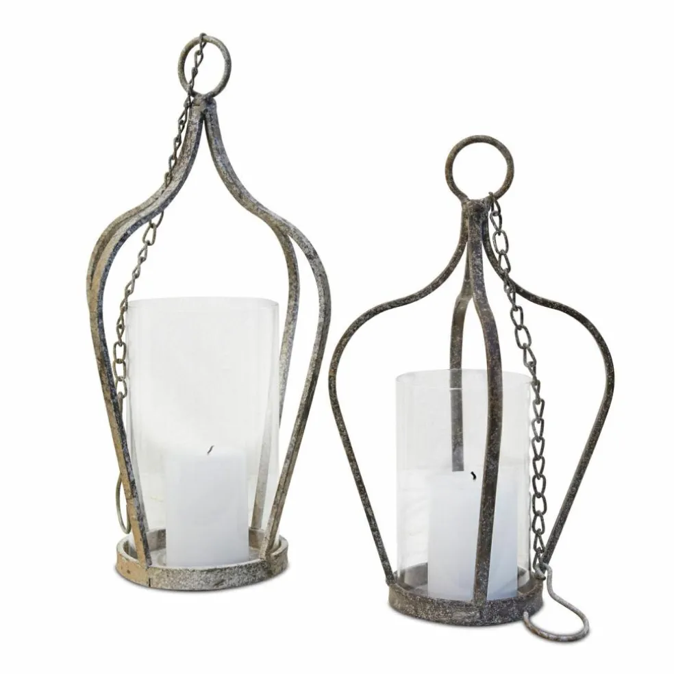 Selbst einem kleinen Teelicht verleiht diese Hängelaterne einen stilvollen Auftritt. Bringt sie doch auf subtile Weise zwei Materialwelten zusammen und erzeugt dabei ganz viel Sinnlichkeit. Den Rahmen bildet ein elegant geschwungenes Gestell aus geschmiedetem Eisen, das durch das antike Finish den gewünschten Nostalgie-Charme unterstreicht. In der Mitte ist ein rundes Glasgefäß gesetzt, das für die Bestückung mit einer Kerze auch abnehmbar ist. Getragen wird das Ganze von einer Eisen-Gliederkette, die sich durch einen Haken problemlos aufhängen lässt. Lassen Sie sich verzaubern von diesen stimmungsvollen Accessoires, die sich mit dem Boho-Chic, Vintage-Stil oder Landhaus-Look bestens vertragen. In zwei unterschiedlichen Größen verbreiten sie viel Flair im Wohnbereich oder auf der Terrasse. Zelebrieren Sie hier jenen kostbaren Moment, wenn der Tag sich dem Ende neigt – also Laternen zum Leuchten bringen, gemütlich auf die Lounge legen und bei einem Glas Wein den Sonnenuntergang genießen.