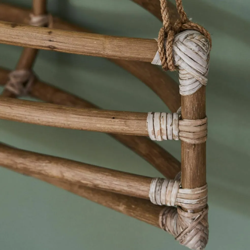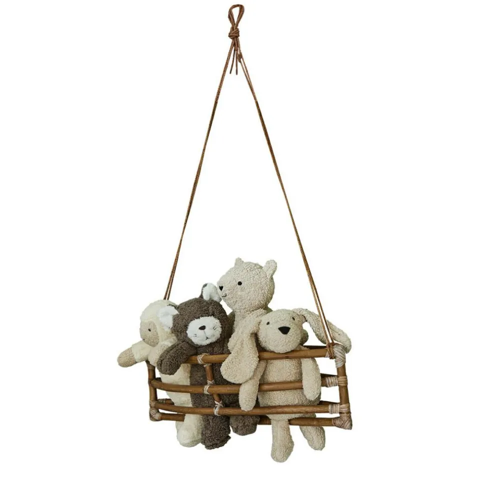 Ein Regal, das nicht nur aufräumt, sondern auch Herzen erobert: Mit seiner zarten Rattanstruktur wirkt dieses Hängeregal fast wie ein kleine Schaukel, die in luftiger Höhe schwebt. Ob Teddybären, Stoffhasen oder Puppen – hier bekommen die wichtigsten Begleiter der Kleinen ihren Ehrenplatz. Die offene Flechtweise lässt das Regal leicht wirken, während das stabile Juteseil für sicheren Halt sorgt und den natürlichen Look unterstreicht. Ideal für Kinderzimmer, die nicht nur praktisch, sondern auch liebevoll eingerichtet sein sollen – mit einem Hauch Bohème und einer Prise Fantasie.