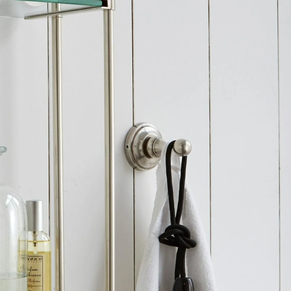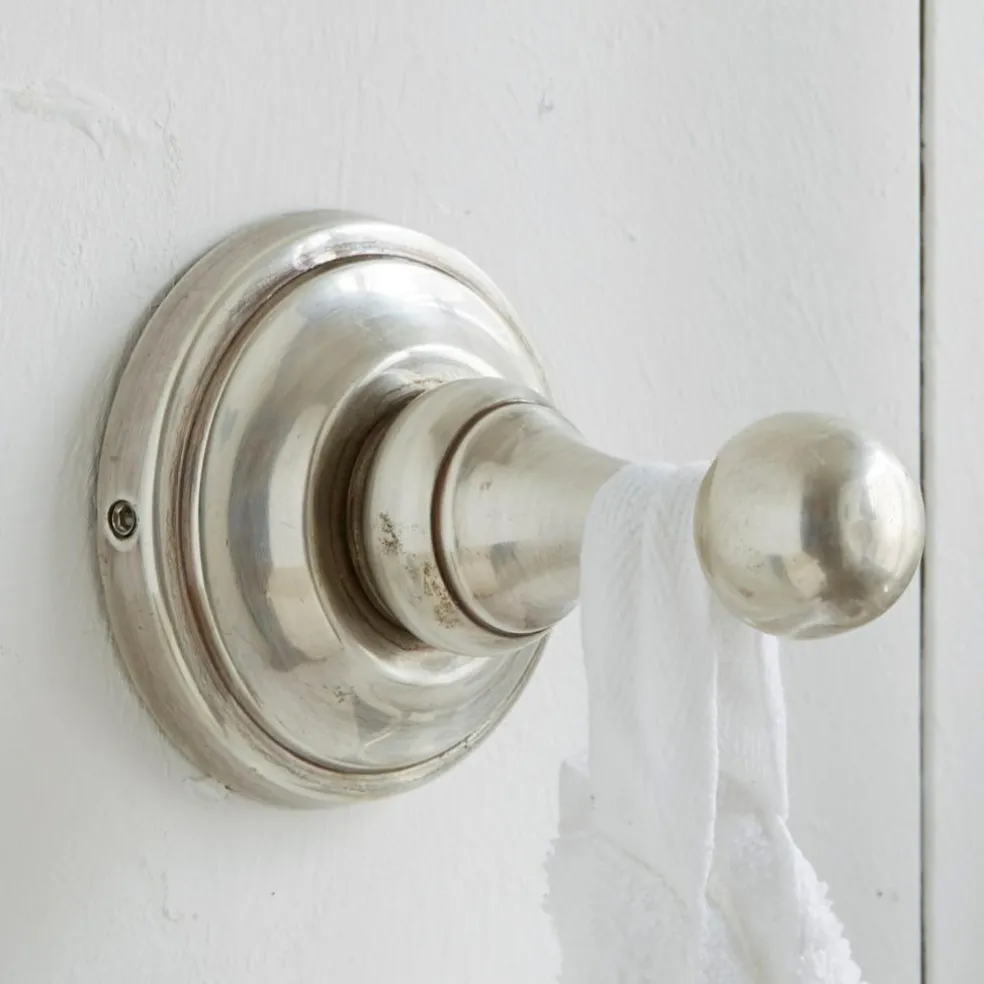 Ein fein gearbeitetes kleines Schmuckstück mit hübschem Knauf, das dekorativ und nützlich zugleich ist. Der Wandhaken besteht aus massivem Messing. Der klassisch elegante Stil passt sich jedem Interior harmonisch an, und bei der Nutzung sind die Möglichkeiten unbegrenzt – ob als Aufhängung für die Lieblingstasche, als Garderobenfunktion für einen Mantel, Hut oder Halstücher oder auch in der Küche, um dort Küchenhandtücher aufzuhängen: Hier haben Sie wirklich die freie Wahl. Auch im Badezimmer ist der edle Wandhaken sehr hilfreich, um etwa Handtücher oder einen Bademantel daran aufzuhängen. Eine sehr hübsche Organisationshilfe für Ihr Zuhause.