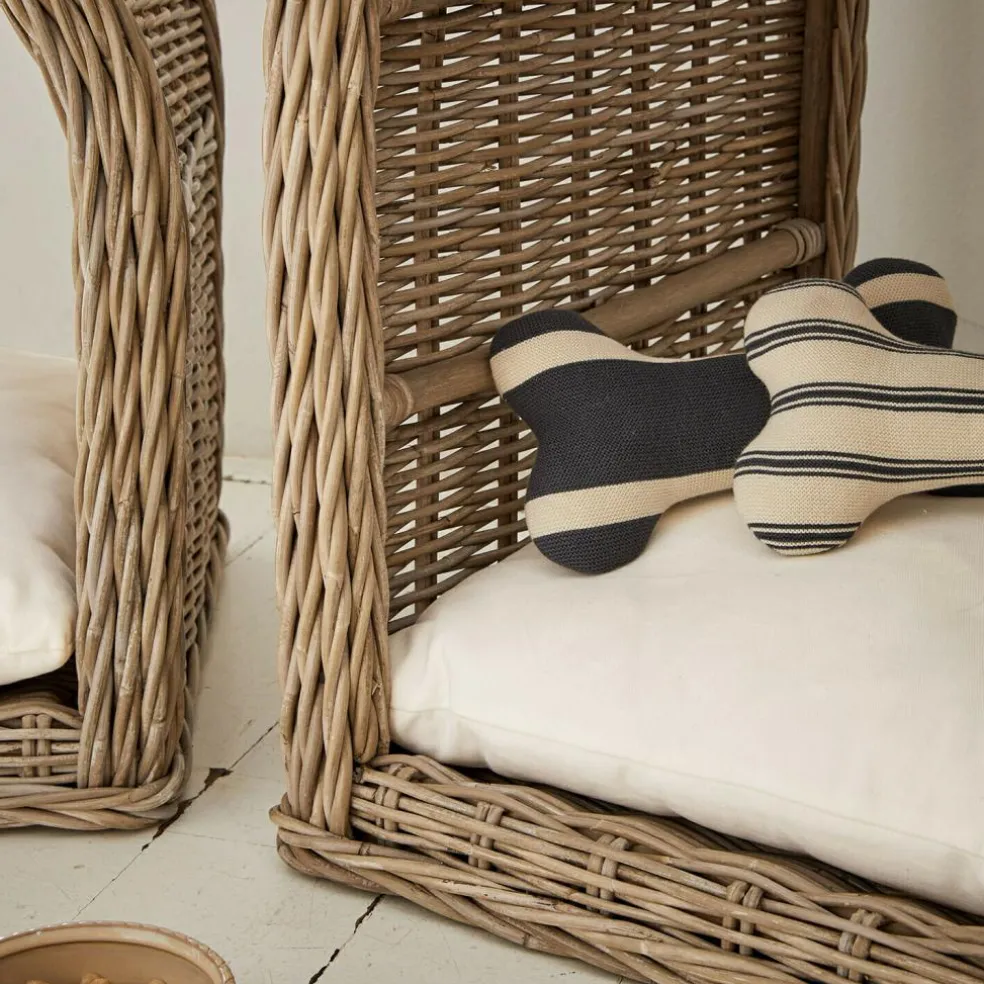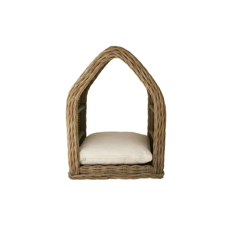 Ob für ein gemütliches Nickerchen am Nachmittag oder als Rückzugsort nach einem langen Spaziergang – diese Hundehütte aus Rattan ist ein kleines Refugium mit ganz viel Herz. Die organisch geformte, luftdurchlässige Struktur schenkt Geborgenheit und lässt dennoch genug Licht und Luft hindurch. Ihr Vierbeiner liegt auf einem weichen Kissen, das sich durch den waschbaren Bezug besonders pflegeleicht zeigt. Eine Hütte zum Verlieben – für Hund und Mensch.