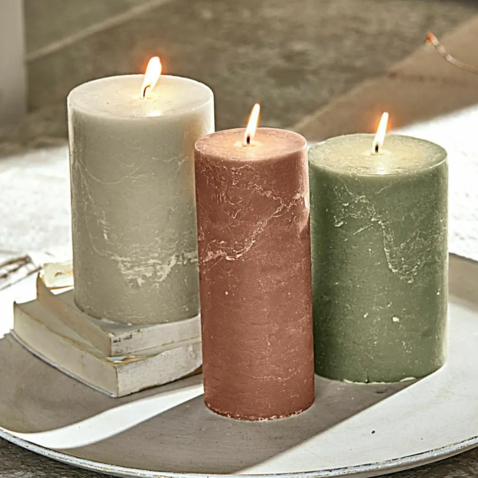 Keine andere Lichtquelle ist so stimmungsvoll wie das sanft flackernde Licht natürlicher Wachskerzen. Kein Wunder, dass sie besonders zur Weihnachtszeit Ihre Terrasse, Ihren Garten oder Ihre Innenräume in ein gemütliches Refugium verwandeln. Auch dieses rustikal anmutende 3er-Set in harmonischem Größen- und Farbspiel setzt wunderschöne Lichtakzente. Und wenn diese Kerzen auf Deko-Accessoires der unterschiedlichsten Art treffen, kann dies der Beginn einer zauberhaften Weihnachts-Inszenierung werden. So lassen sich mit Schätzen aus der Natur wie Beerenzweige, Tannenzapfen oder Nüssen wunderschöne Arrangements für den Kamin oder die festliche Tafel kreieren. Auf dem Fensterbrett verbreiten sie mit ihrem Kerzenschein einen magischen Zauber. Und die Laterne vor der Haustür erhellen sie mit reizvollem Lichterglanz. Die Kerzen sind gegossen und vollständig durchgefärbt und weisen durch eine spezielle Arbeitsweise eine schöne, marmorierte Oberfläche auf. Außerdem sind sie duftneutral, langlebig und erzeugen eine besonders hohe Leuchtintensität.