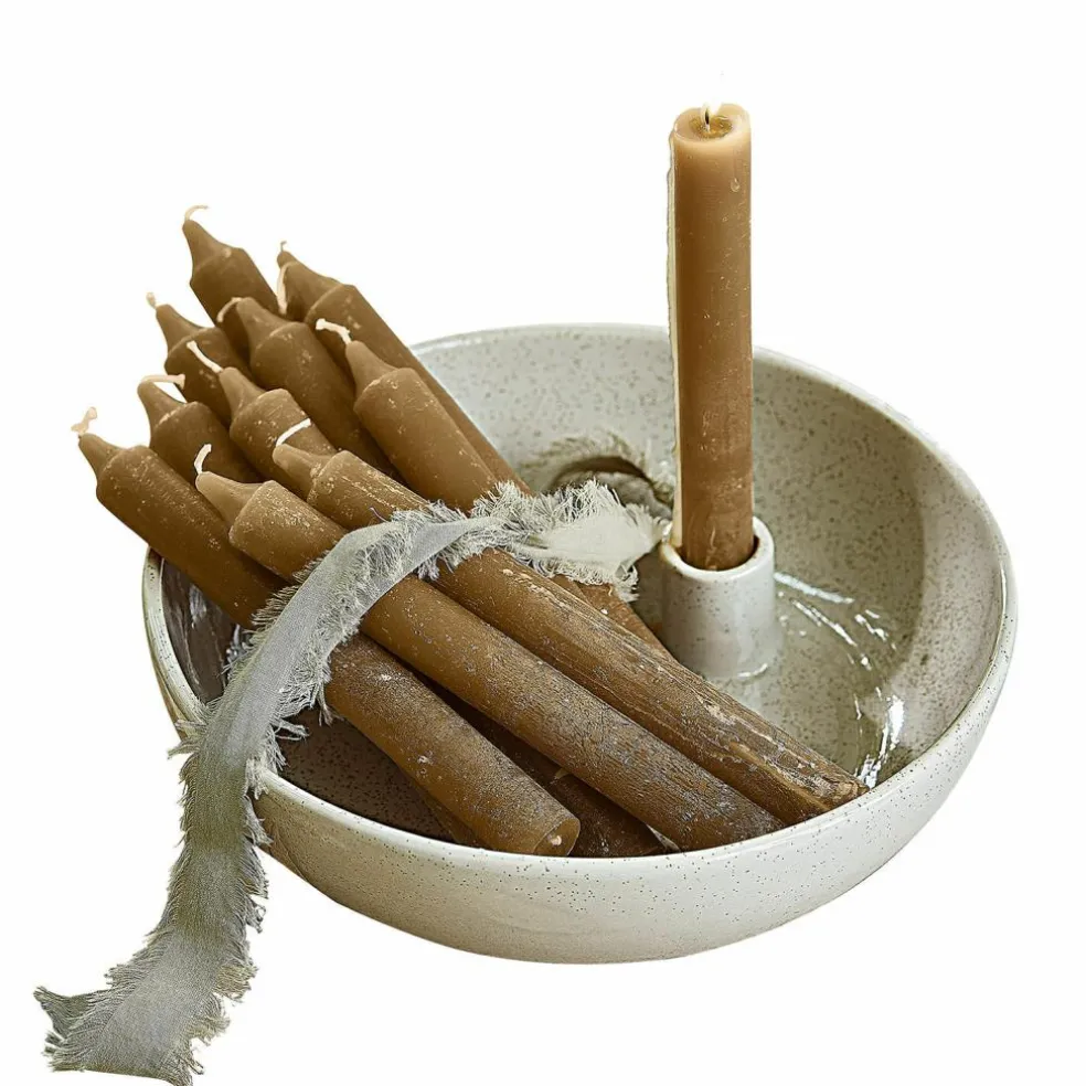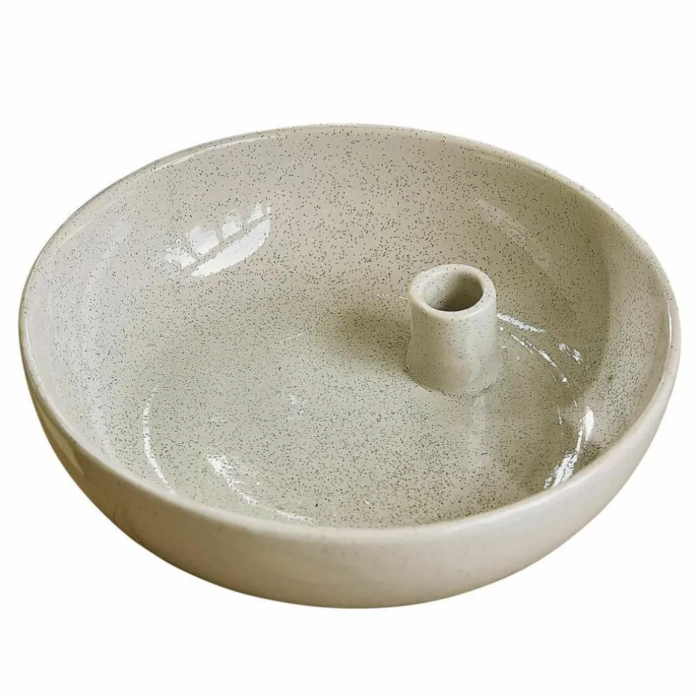 Der Kerzenhalter aus Steingut vereint zeitlose Schlichtheit mit einer natürlichen Anmutung, die jedes Zuhause in eine Wohlfühloase verwandelt. Die sanften, neutralen Farben wirken beruhigend, während die fein gesprenkelte Oberfläche ein dezentes, handwerkliches Flair hinzufügt. Mit seinem klaren Design und dem praktischen Raum rund um die Kerze lädt dieser Halter dazu ein, immer wieder neu gestaltet zu werden – ob mit frischen Blumen im Frühling, Tannenzweigen im Winter oder zarten Accessoires das ganze Jahr über. Ein perfekter Begleiter für besondere Momente und eine stilvolle Ergänzung jeder Wohnlandschaft.