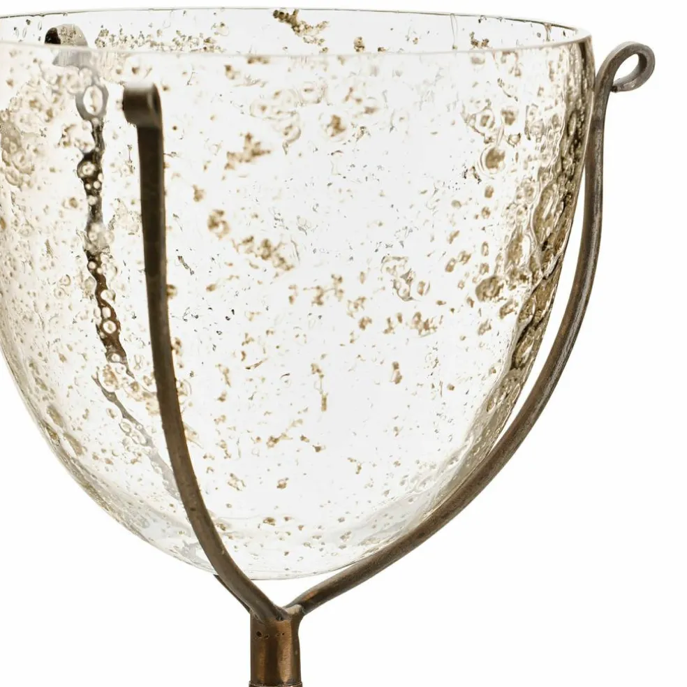 Genießen Sie die schönen Momente des Lebens mit diesem bezaubernden Kerzenständer 2er-Set: Die Glaseinsätze mit eingearbeiteten Partikeln dieses stilvollen Duos schaffen eine faszinierende Lichtstreuung und verwandeln jeden Raum in eine Oase der Entspannung. Mit ihrem stabilen Eisenfuß sind sie nicht nur schöne Lichtbringer, sondern auch stilvolle Deko-Objekte für Ihr Zuhause. Platzieren Sie sie auf dem Esstisch, im Wohnzimmer oder im Arbeitszimmer und erfreuen Sie sich an ihrem warmen und einladenden Schein. Bei der Wahl der Kerzen für die dafür vorgesehene Halterung können Sie selbst kreativ werden, denn diese werden nicht mitgeliefert.