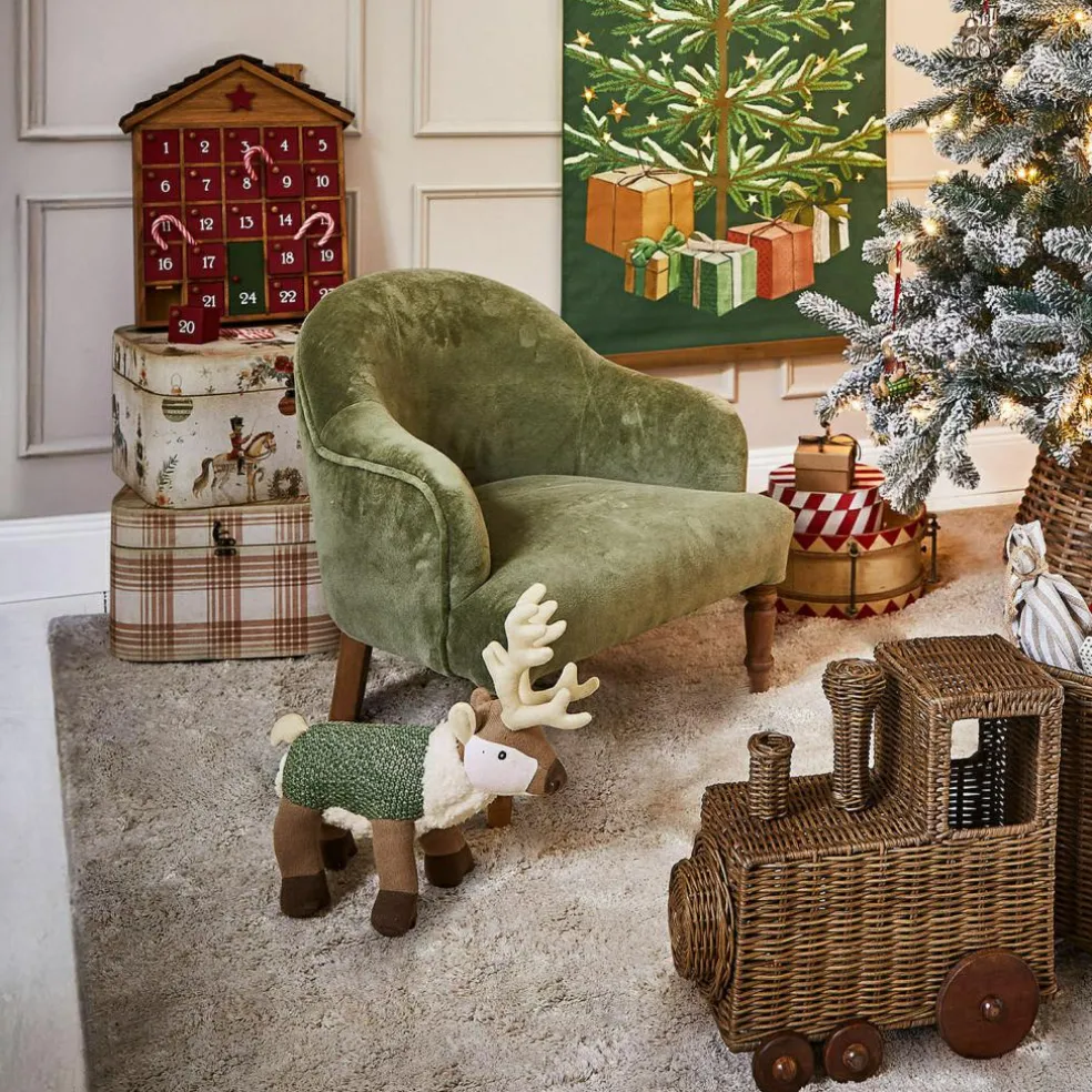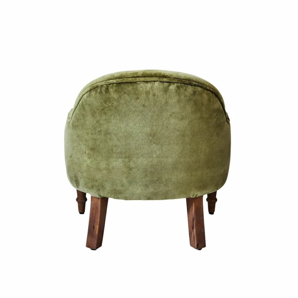 So gemütlich wie bei den Großen – nur viel niedlicher. Dieser Kindersessel vereint wohnliche Eleganz mit liebevoller Gestaltung. Der zartgrüne Bezug aus samtig weichem Stoff schmiegt sich angenehm an und verleiht dem Sessel eine edle, aber zugleich kindgerechte Anmutung. Die breite Sitzfläche bietet viel Platz für Kuscheltiere, Bücher oder kleine Pausen. Und mit den formschön gedrechselten Vorderbeinen aus Holz bringt der Sessel einen Hauch Landhaus-Charme ins Kinderzimmer. Ob als Blickfang in der Leseecke oder als ganz persönlicher Lieblingsplatz – dieser Sessel macht kleine Menschen ganz groß.