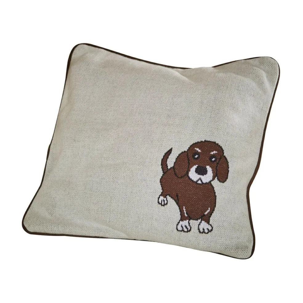 Hier kommt ein treuer Freund fürs Sofa: Die gestrickte Kissenhülle mit Dackelmotiv verbindet Humor, Behaglichkeit und Design auf herrlich unbeschwerte Weise. Der niedliche Hund mit treuem Blick ist fest in die weiche Maschenstruktur eingearbeitet – ganz ohne Druck, sondern direkt im Garn gestaltet. Die glatte, dehnbare Strickoberfläche ist angenehm auf der Haut und lässt sich leicht mit einem passenden Kissen füllen. Ob als verspieltes Detail im Wohnzimmer oder als Highlight auf dem Hundebett – dieses charmante Accessoire macht jeden Raum ein Stück fröhlicher.