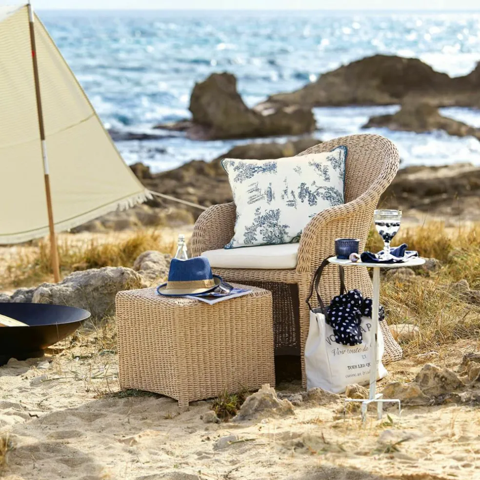 Mit seinem kunstvollen Toile-de-Jouy-Muster sorgt diese stilvolle Kissenhülle für außergewöhnliche Akzente in Ihrem schönen Zuhause – oder natürlich auch draußen auf der Terrasse im Liegestuhl, wenn die Tage warm und wohltuend sind. Perfekt für ruhige Momente mit einer Zeitschrift, einem Roman oder dem Handy. Sie werden die traumhafte Liaison aus Baumwolle und Leinen lieben! Perfekt passend dazu ist die Nackenrolle 21936.