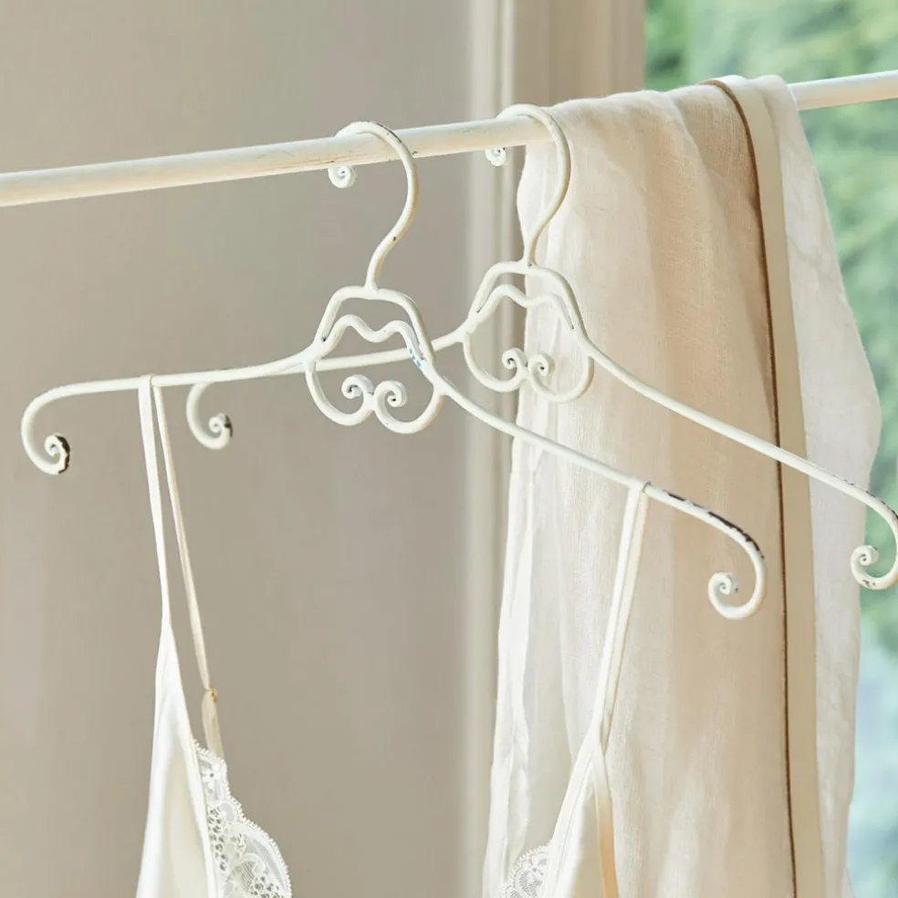 Trotz ihrer filigranen Gestalt halten diese kunstvoll geformten Kleiderbügel einer Belastung von bis zu fünf Kilogramm stand. Sie sind aus hochwertigem, robusten Eisen gefertigt und mit einem geschmackvollen Antik-Finish veredelt. Das schwungvolle Design schmeichelt dem Auge, ist funktionell und bietet natürlich auch Befestigungsmöglichkeiten für Trägerkleider und Krawatten. Durch ihre besondere Schönheit sind diese Kleiderbügel fast zu schön, um sie im Schrank zu verstecken. Das Set ist ein toller Blickfang für die Wandgarderobe oder den Garderobenständer im Eingangsbereich.