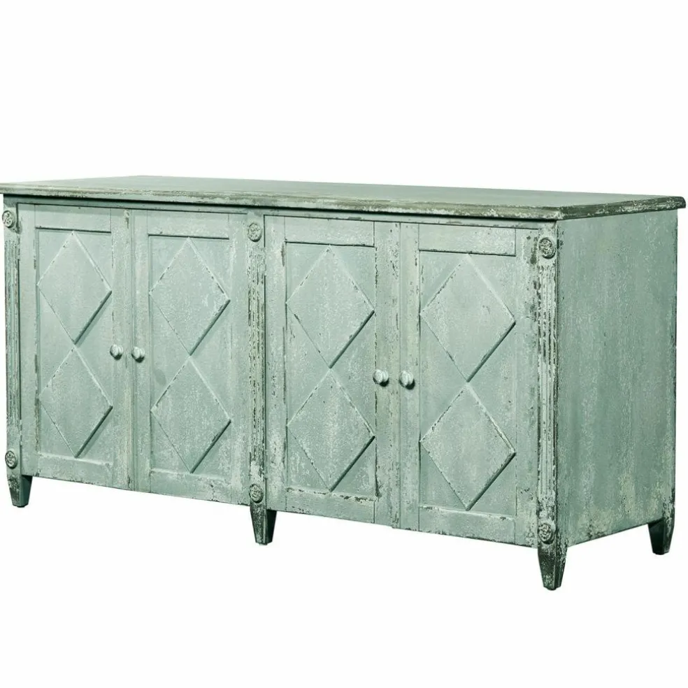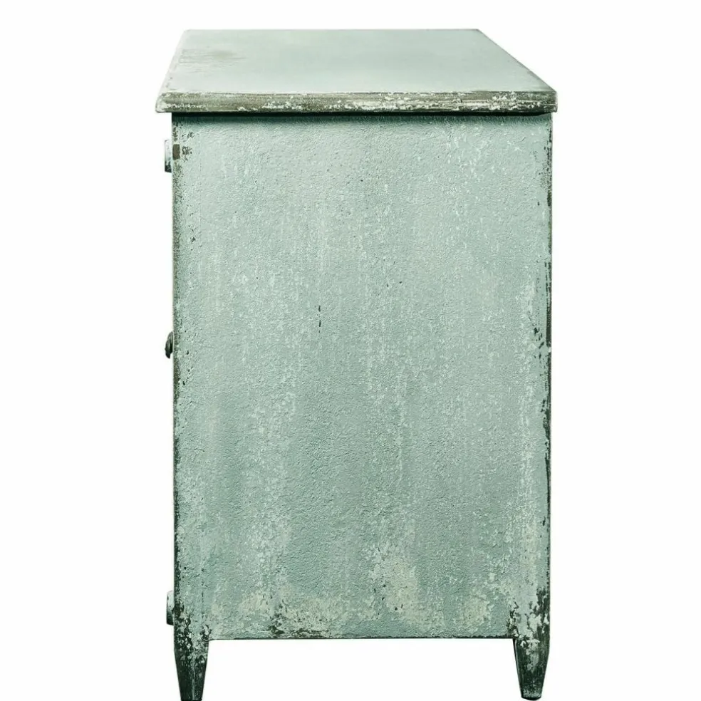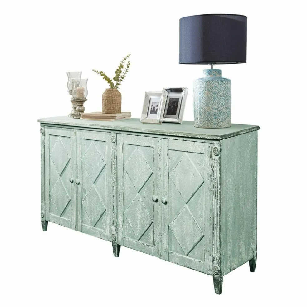 Diese exquisite Kommode, die in der kunstvollen Shabby Chic-Ästhetik gehalten ist, verkörpert einen romantischen Geist mit einem Hauch von Nostalgie. Jedes Detail, von den abgenutzten Ecken bis hin zu den dezenten Schnitzereien, wurde bedacht gewählt, um eine Atmosphäre zu schaffen, die sowohl warm als auch einladend ist. Diese Kommode ist ein Stück handwerklicher Tradition, das Ihrem Raum Persönlichkeit und einen einzigartigen Charakter verleiht. Ob in Ihrem Schlafzimmer, im Wohnzimmer oder im Flur, sie bietet nicht nur großzügigen Stauraum, sondern dient auch als einzigartiges Gesprächsstück, das die Geschichte Ihrer individuellen Ästhetik erzählt.