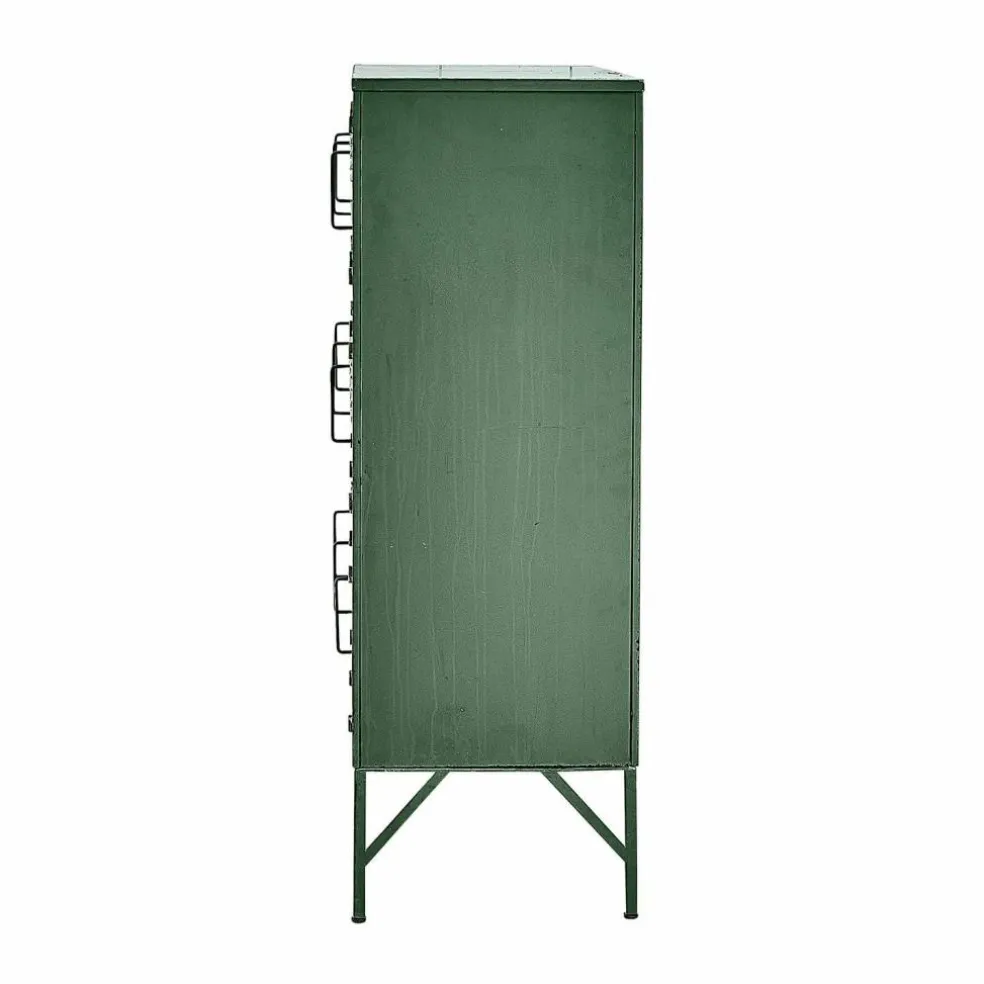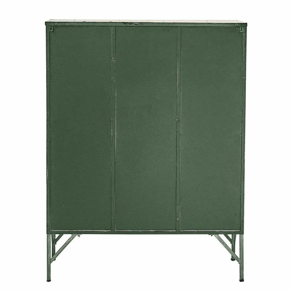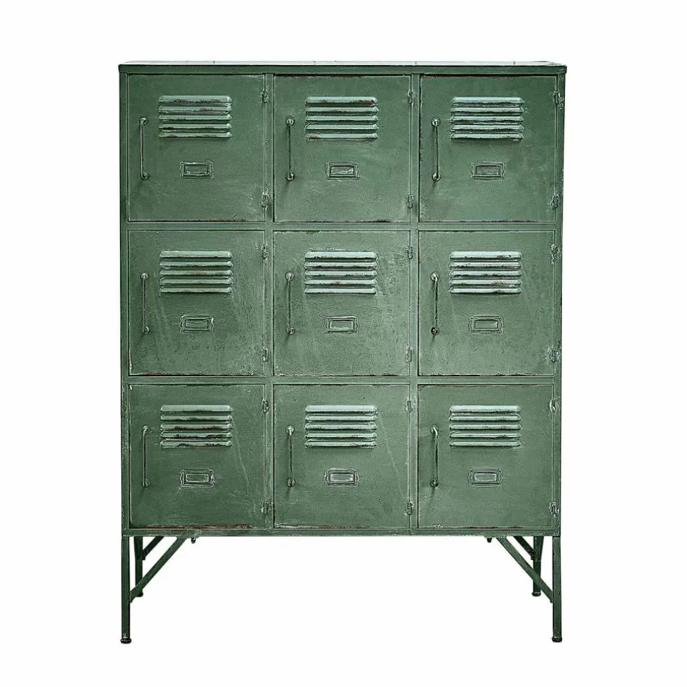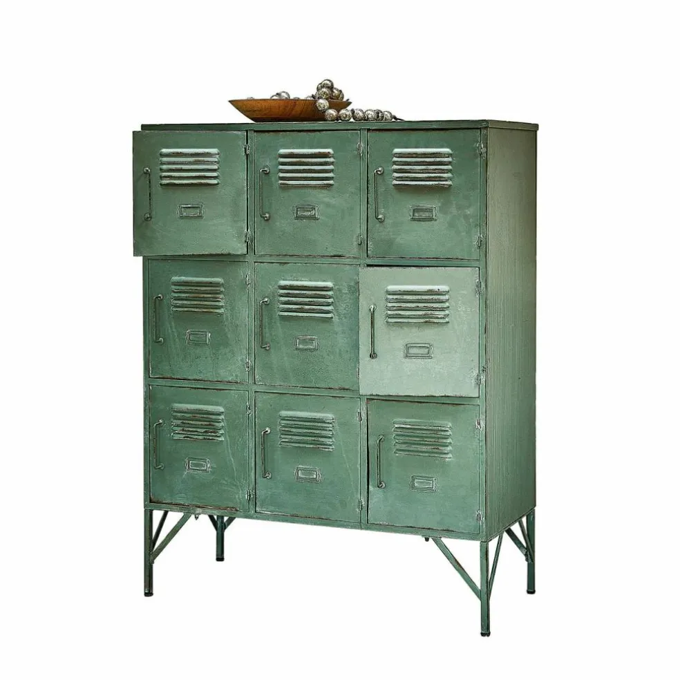 Diese Kommode ist ein wahres Statement im Industrial-Stil. Gefertigt aus Eisen, besticht sie mit einem antikgrünen Finish und einer authentischen Rostoptik, die den Vintage-Charakter unterstreicht. Jedes Fach ist mit Lüftungsschlitzen und Griffen ausgestattet und verleiht der Kommode einen nostalgischen Touch, der an alte Spinde erinnert. Auch befindet sich an jeder Tür Platz für Einsteckkärtchen (exkl.). Ihre vielseitige Funktionalität und ihr markantes Design machen sie zu einem unverzichtbaren Highlight für Räume, in denen Individualität und Stil gefragt sind. Ob im Wohnbereich, Flur oder Home-Office – dieses Möbelstück zieht alle Blicke auf sich und sorgt gleichzeitig für praktische Aufbewahrungsmöglichkeiten.