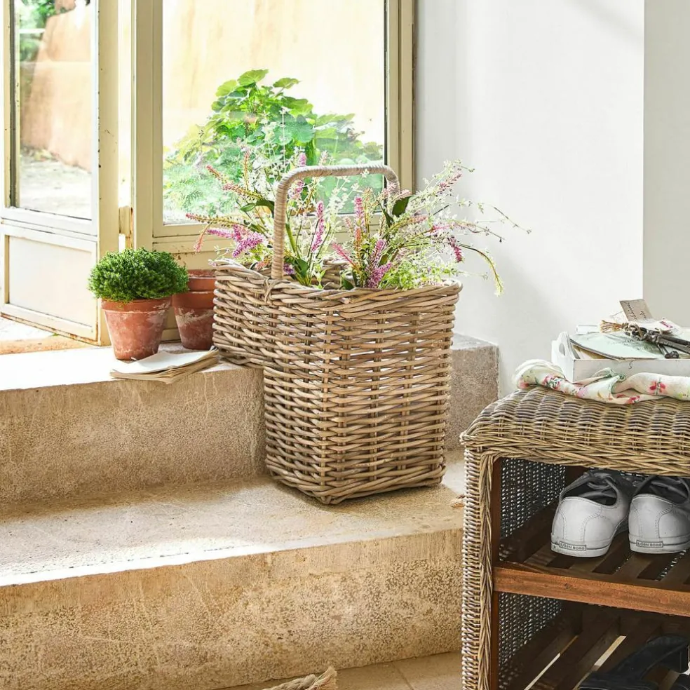 Der Treppenkorb aus naturbelassenem Rattan überzeugt durch seine Funktionalität und sein zeitloses Design. Dank der besonderen Form passt er sich optimal an die Treppenstufen an und schafft eine unkomplizierte Lösung, um Dinge wie Zeitungen, Bücher oder Accessoires von einem Stockwerk ins andere zu transportieren. Der praktische Griff sorgt dafür, dass alles bequem und sicher bewegt werden kann. Ob als stilvolles Dekorationsobjekt oder als hilfreiches Accessoire im Alltag – dieser Korb ist eine charmante Bereicherung für jedes Zuhause.