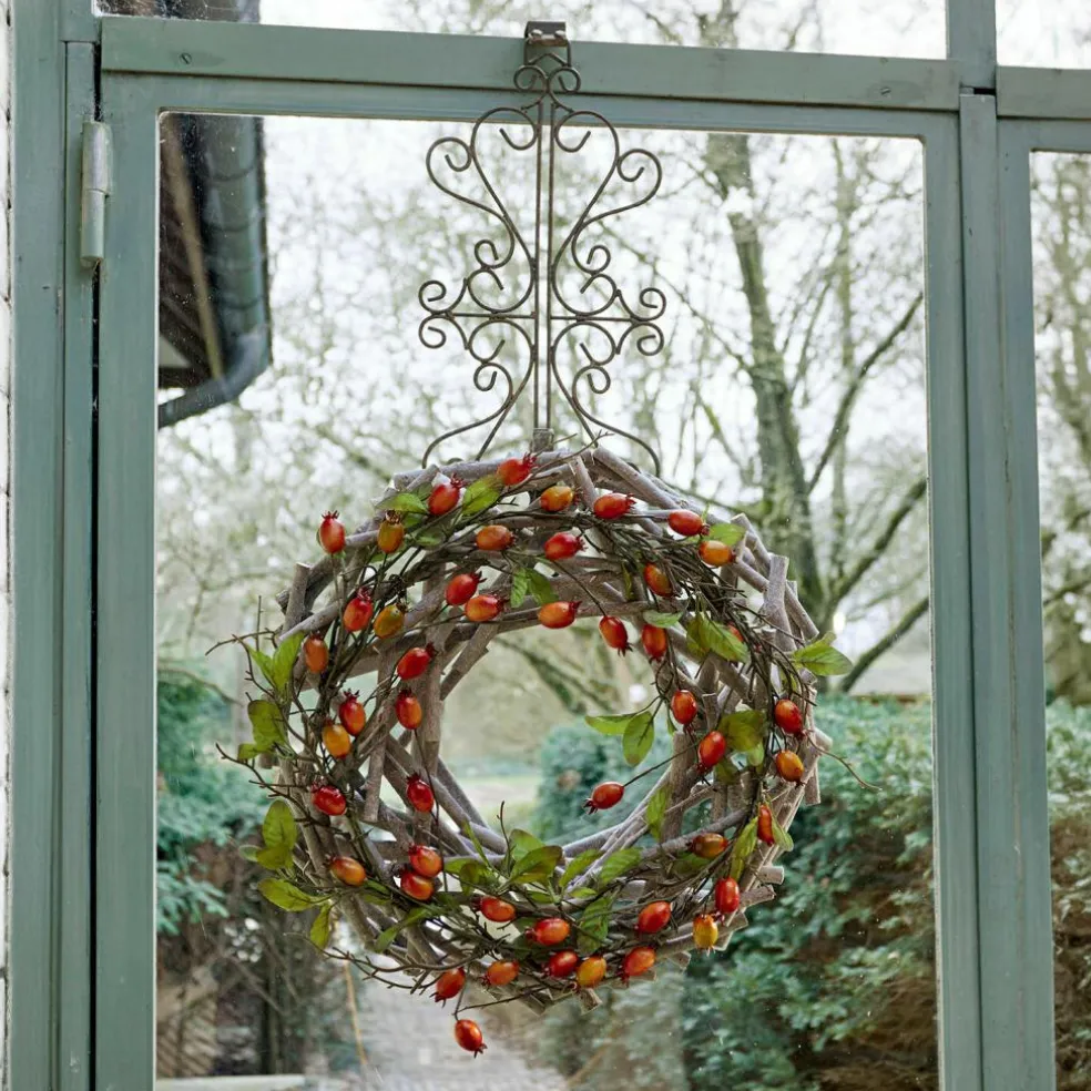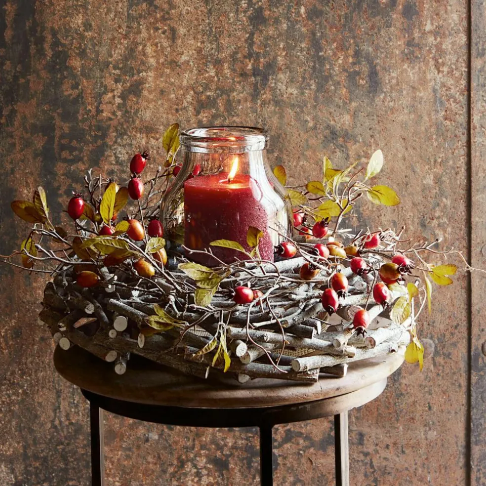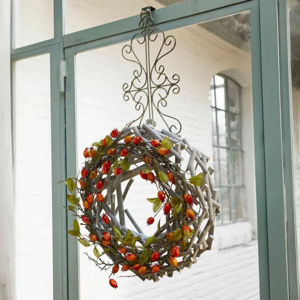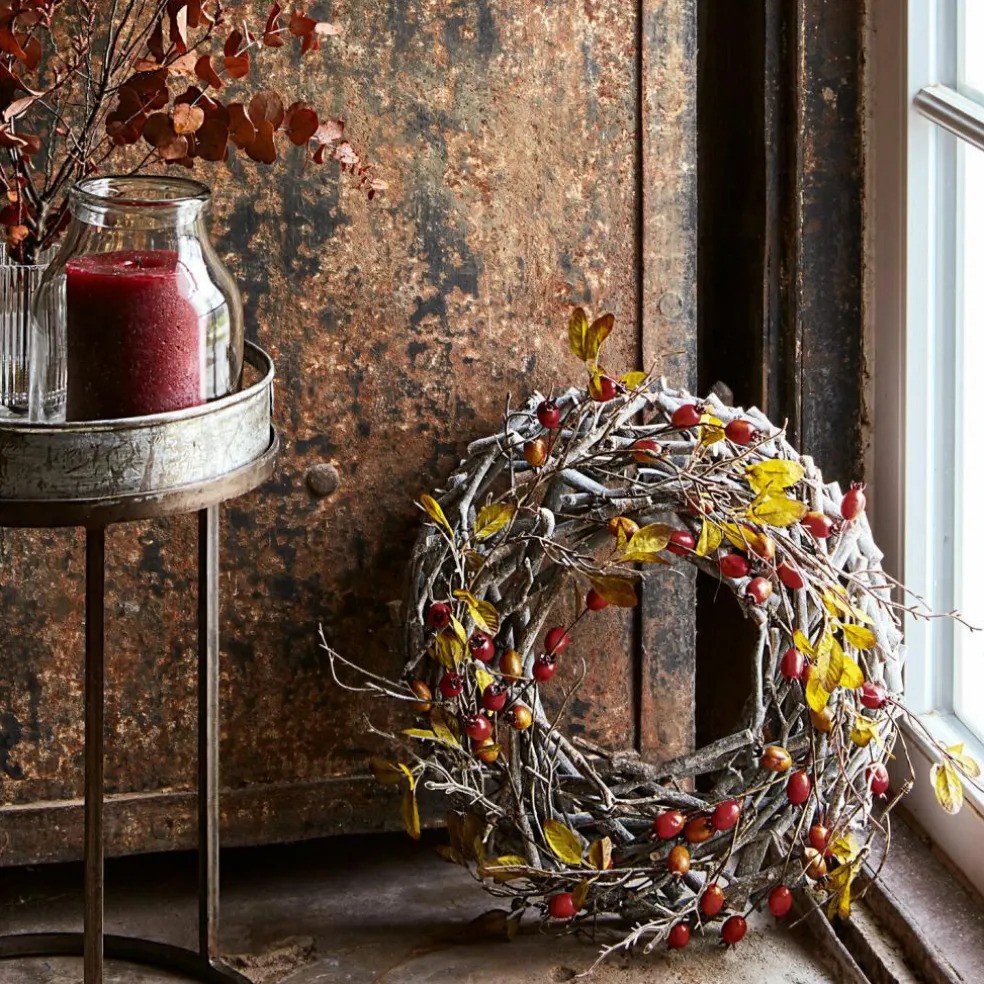 Hübsche Haselnusssträucher, dazu farbenfrohe Hagebutten und Blätter, die wie echt wirken: Verzaubern Sie Ihr Zuhause mit herbstlichem Charme. Der von Hand gebundene Kranz sieht täuschend echt aus. Ein außergewöhnliches Schmuckstück, das Ihnen zum Beispiel auf Ihrer Festtafel, am Eingang Ihres Zuhauses oder in Ihrer Küche lange Zeit als Eye-Catcher dienen wird. Erfreuen Sie sich und Ihre Gäste mit den spielerisch und innig verschlungenen Elementen, die Ihre vier Wände um ein schönes Dekostück bereichern.