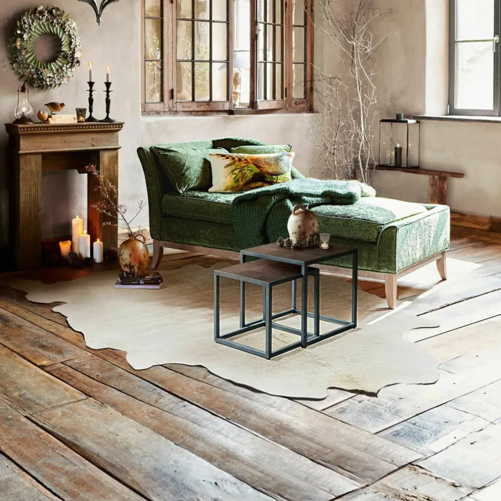 Kein anderer Klassiker prägt den rustikalen Country-Look mehr als ein natürlicher Kuhfellteppich. Doch während er in ehrwürdigen Landhäusern schon seit jeher ein fester Bestandteil ist, erobert er jetzt auch moderne Wohnwelten. Denn die natürliche Fellzeichnung und die glatte, weiche Haptik machen dieses kostbare Stück Natur so besonders. Dieser Fellteppich hebt sich durch seine edle, helle Farbigkeit mit dezentem Melange-Effekt hervor. Die Musterung fällt von Modell zu Modell unterschiedlich aus, doch gerade diese charaktervollen Unregelmäßigkeiten lassen aus jedem Exemplar ein exklusives Unikat entstehen. Gönnen Sie sich diesen außergewöhnlichen Wohnakzent, der mit viel ländlichem Charme Ihr Wohn-, Kamin- oder Arbeitszimmer veredelt und alle Blicke auf sich zieht. Mit Böden aus naturbelassenen Holzdielen oder Natursteinfliesen harmoniert er am schönsten.