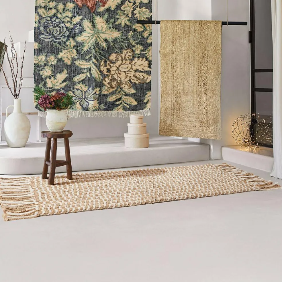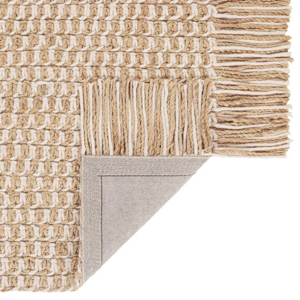 Nicht nur optisch ein echtes Highlight, sondern auch ein sinnliches Erlebnis unter den Füßen: Dieser schmale Läufer vereint die natürliche Stärke der Jute mit der weichen Textur wolliger Fasern zu einem harmonischen Ganzen. Das geflochtene Makramee-Muster verleiht ihm Tiefe und Struktur – perfekt für schmale Flure, Bettkanten oder als Akzent in offenen Wohnbereichen. Die Fransen an beiden Enden setzen einen verspielten Abschluss und machen den Boho-Look komplett. Durch die Kombination aus Materialien und Handwerk entsteht ein Unikat, das zugleich rustikal, modern und wohnlich wirkt.