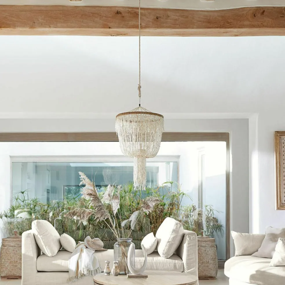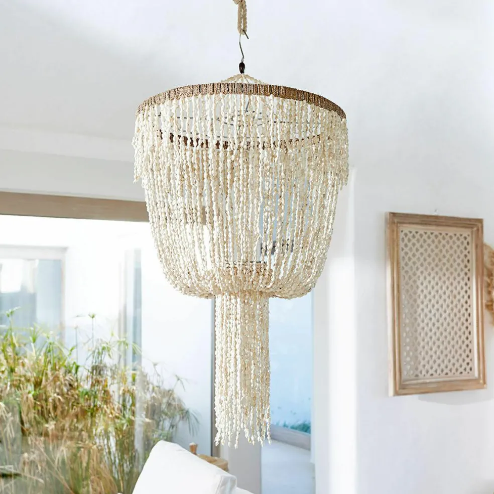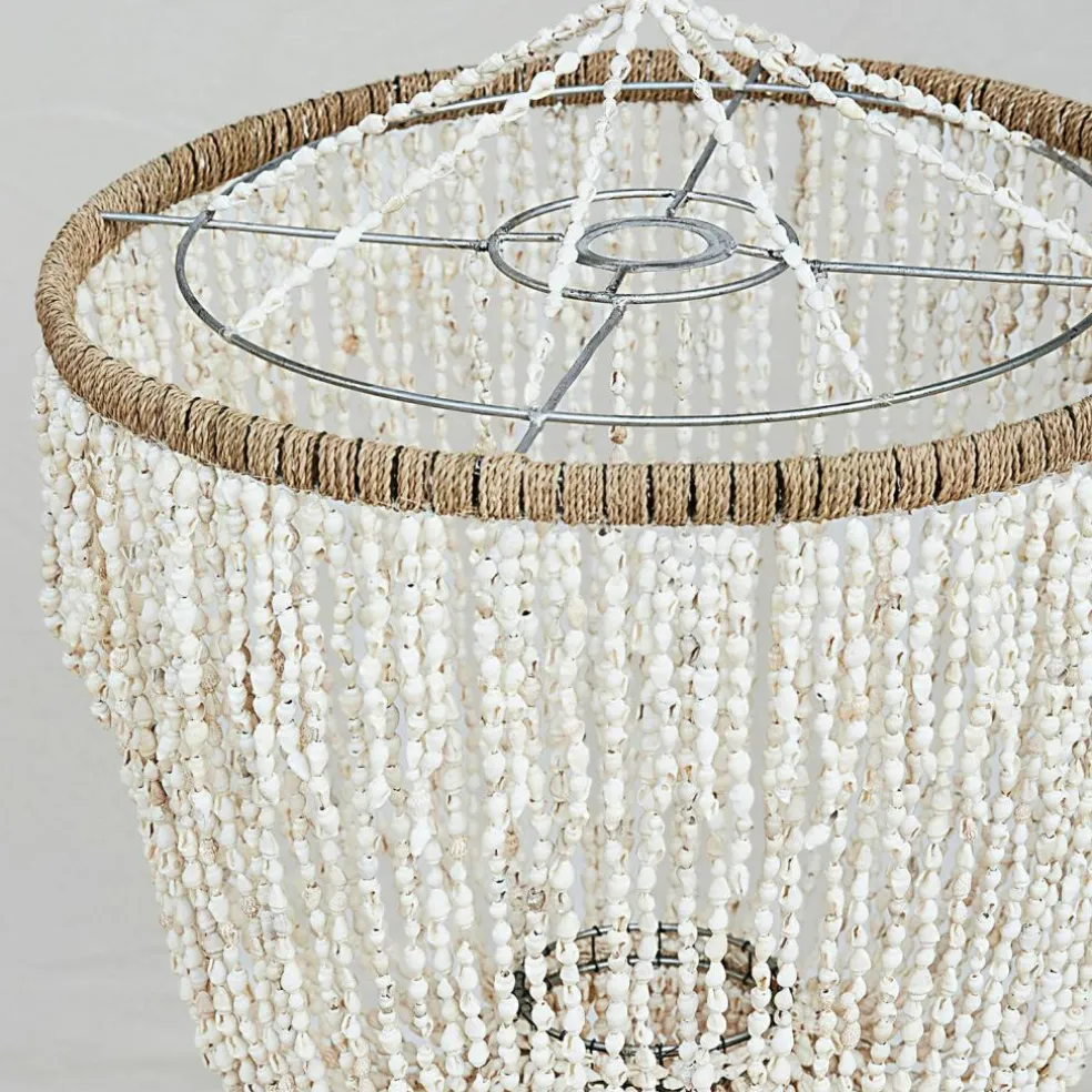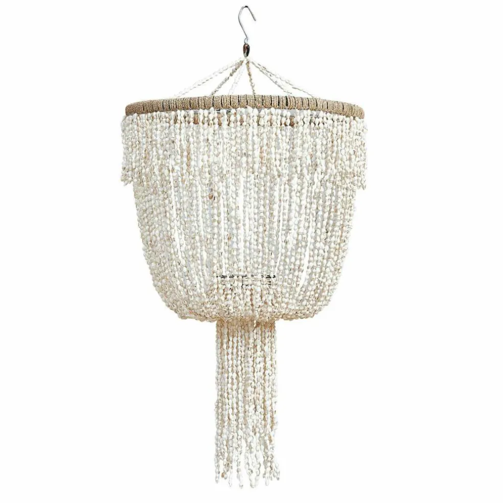 Dieser handgefertigte Lampenschirm aus Muscheln ist eine Hommage an die Schönheit und Ruhe des Ozeans. Jede einzelne Muschel wurde sorgfältig ausgewählt und zusammengestellt, um ein Stück der Harmonie des Meeres in Ihr Zuhause zu bringen. Die sanften Weiß- und Cremetöne harmonieren mit verschiedenen Einrichtungsstilen und schaffen ein einzigartiges Beleuchtungselement, das sowohl visuell als auch akustisch beeindruckt. Egal, ob Sie den Schirm in einem luftigen Sommerhaus oder als Highlight in einem städtischen Refugium nutzen, er wird sicherlich ein zentrales Gesprächsthema sein.