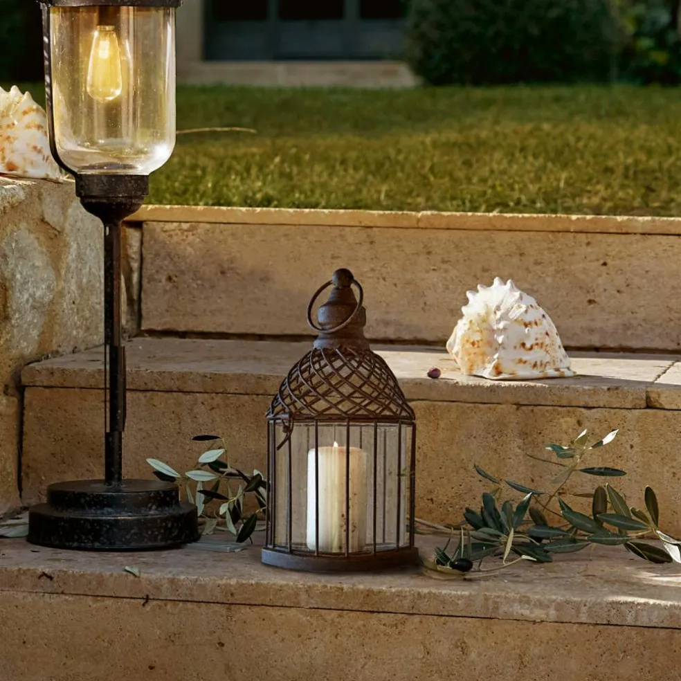 Beim Design dieser bezaubernden Laterne schwingt ein Hauch von Orient mit und die unterschiedlichen Einflüsse machen sie sehr vielseitig einsetzbar. Sie passt perfekt zu klassisch eleganten Interieurs und setzt in zeitgenössisch eingerichteten Räumen interessante Akzente. Sie ist aus Eisen gefertigt und weist eine sehr schöne Patina auf, die im Laufe der Jahre immer schöner wird. Zudem ist sie verglast, um Kerzen vor Wind zu schützen. Die Laterne ist also auch für Balkon, Terrasse und Garten ideal. Die Krone lässt sich aufklappen und dank eines Tragerings lässt sich das Schmuckstück auch aufhängen.