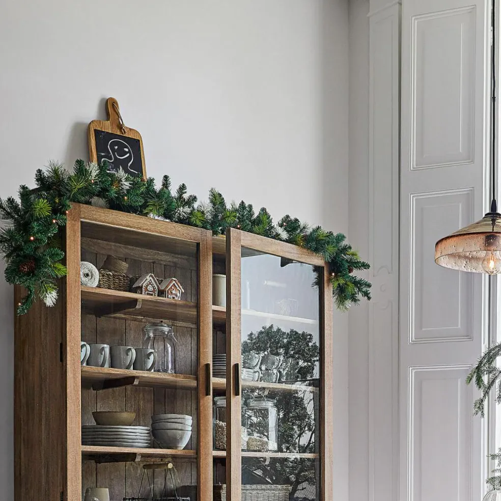 Täuschend real – die imposant lange Girlande sieht wirklich ganz natürlich aus. Schließlich hat das edle Design auch echte Zapfen. Einige Stellen sind stimmungsvoll mit Kunstschnee aus Baumwolle beflockt. So erscheint die Girlande wie frisch aus dem verschneiten Winterwald gesammelt und lässt an duftende Tannen denken. Eine integrierte Lichterkette mit 30 LEDs sorgt für eine gemütliche Illumination. Dank des Batteriebetriebs lässt das schöne Stück sich völlig ohne lästige Kabel an jeder gewünschten Stelle drapieren. So schmückt Sie etwa ein Treppengeländer, den Türrahmen oder einen Bettpfosten stimmungsvoll. Auch um eine Kaminkonsole drapiert gelingt mit der edlen Girlande ein festlicher Akzent. Alle Jahre wieder einsetzbar, immer grün und niemals nadelnd – das perfekte Accessoire für alle, die Weihnachten lieben.