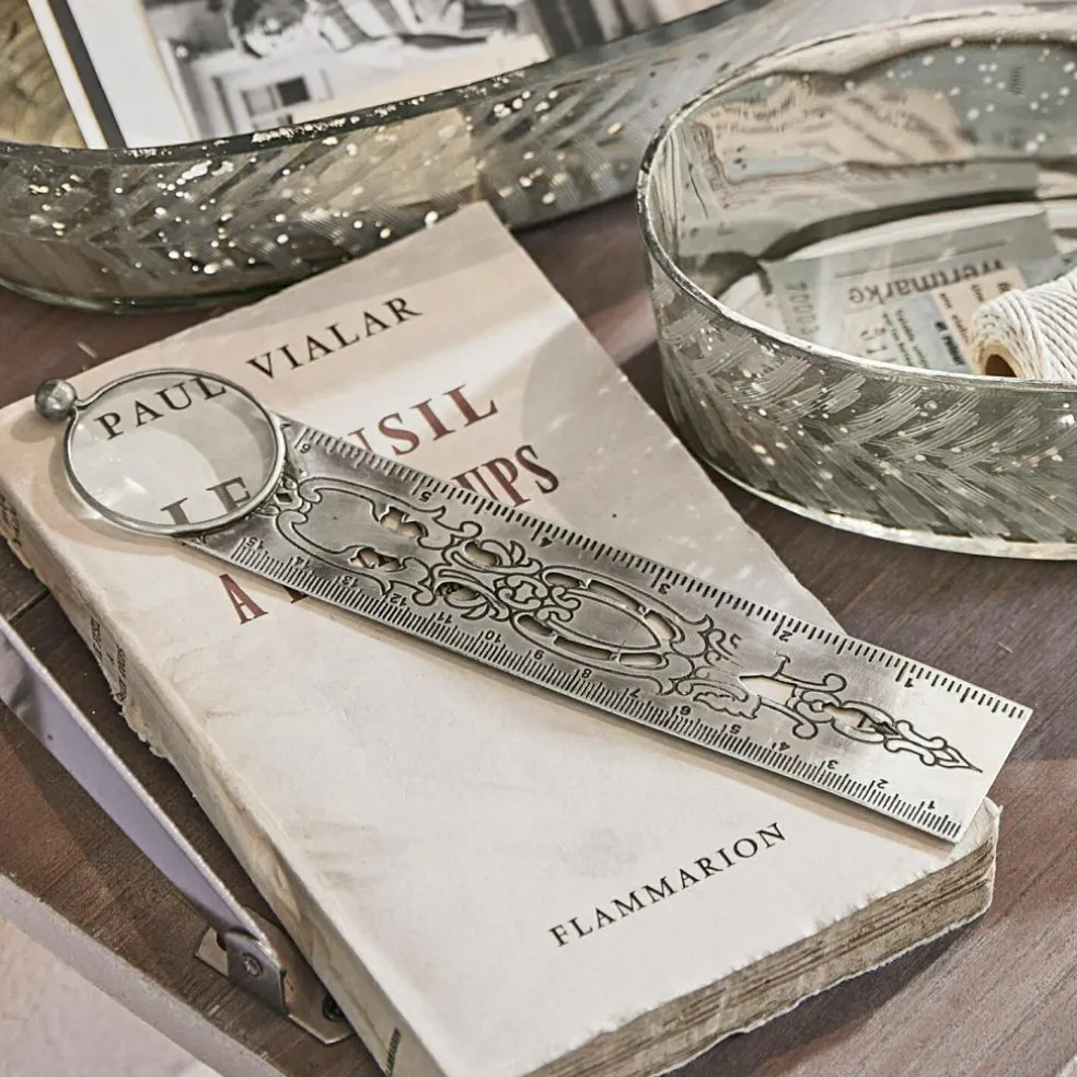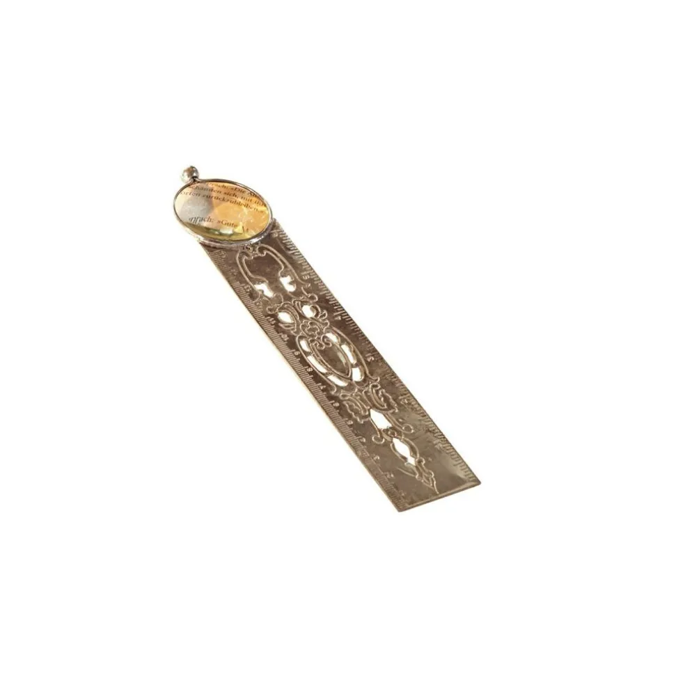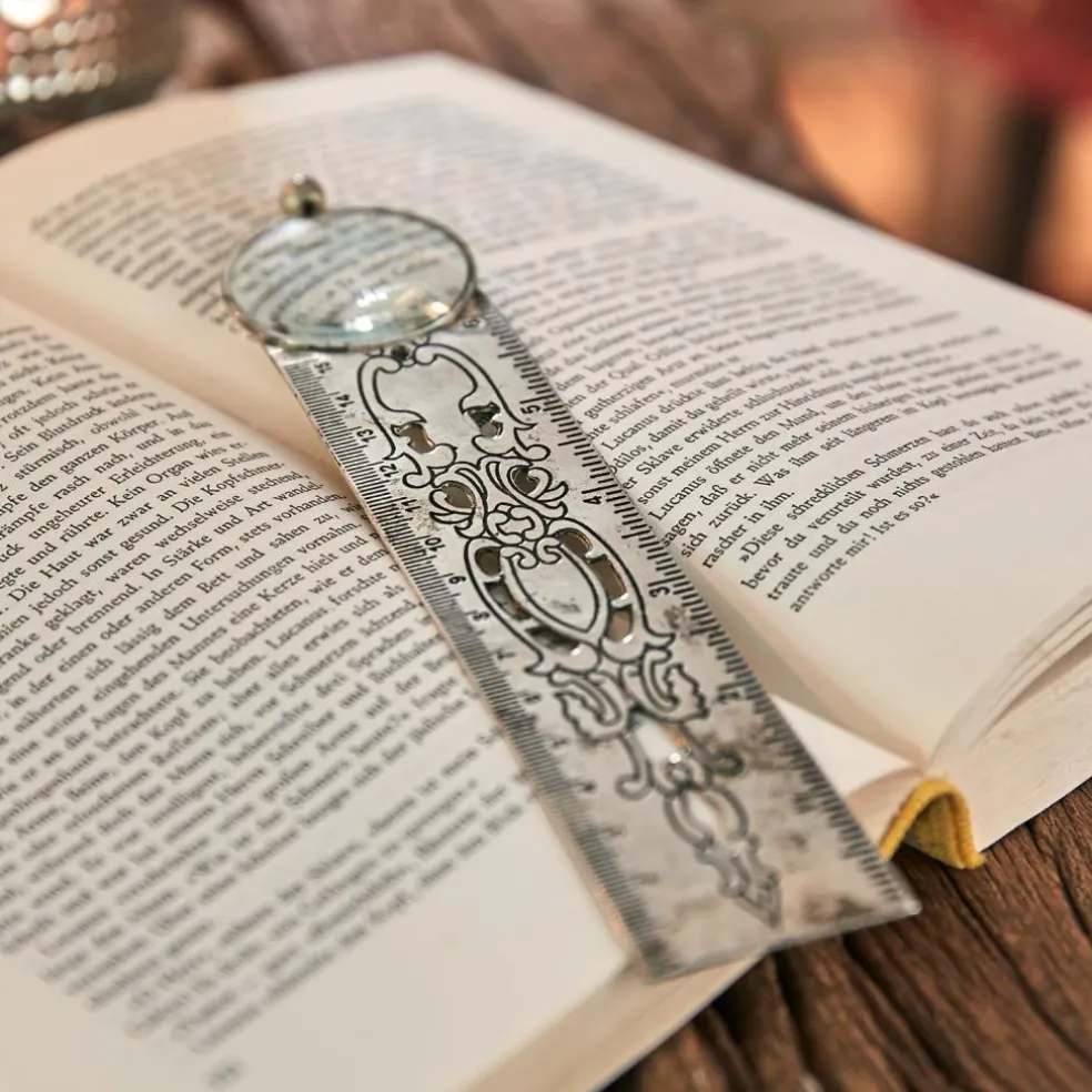 Dieses Lesezeichen ist einfach ein wahres Schmuckstück: Aus Messing in Antiksilber in liebevoller Handarbeit gefertigt, beeindruckt es mit seinem Vintage-Look, der noch abgerundet wird durch das filigrane, ornamentale Muster. Aber nicht nur optisch kann es beeindrucken, auch funktional hat es einiges zu bieten. Denn nicht nur als Lesezeichen, sondern auch als Lineal kann es genutzt werden. Und das Beste: Am oberen Ende verfügt es über eine Lupe, so kann man selbst Kleingedrucktes jederzeit lesen. Ein tolles Teil, das Optik und Funktionalität auf unnachahmliche Weise vereint.