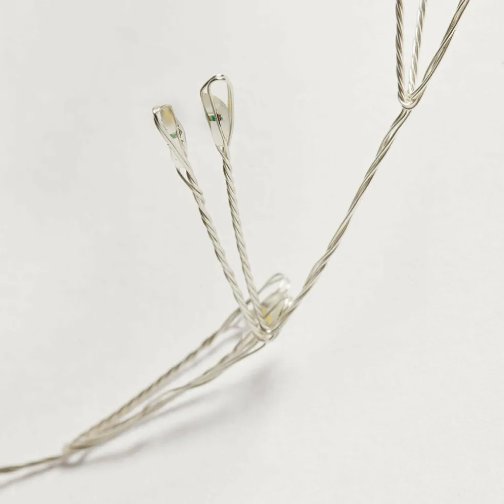 Wie tanzende Lichtfunken auf silbernem Draht – diese Lichterkette verwandelt selbst schlichte Arrangements in ein poetisches Schauspiel aus Wärme und Licht. Die 200 warmweißen LEDs sitzen auf filigranen Verästelungen, die sich sanft und flexibel um Zweige, Dekobögen oder Fensterrahmen schmiegen. Das feine Drahtgeflecht wirkt wie von zarter Hand gezeichnet und bringt in jeder Kurve einen Hauch festlicher Magie zum Vorschein. Ob für Weihnachten, stimmungsvolle Abende oder romantische Lichtakzente – dieses Leuchtwunder entfaltet seine Wirkung überall dort, wo Atmosphäre gefragt ist.