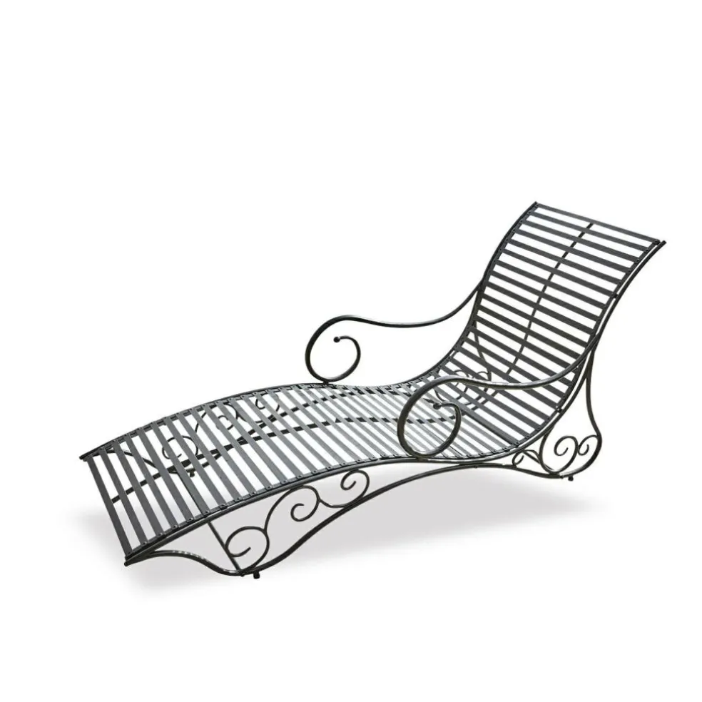 Von den ersten wärmenden Sonnenstrahlen im Frühling bis zu den letzten goldenen Oktobertagen wartet im Garten ein Plätzchen auf Sie, das Sie am liebsten in jeder freien Minute aufsuchen möchten. Was Sie auch tun, denn nirgendwo sonst können Sie so herrlich entspannen und tagträumen wie auf dieser Liege. Doch auch, wenn leider andere Dinge Priorität haben oder sich die Sonne hinter dunklen Wolken versteckt, genießen Sie vom Haus den Blick auf Ihre Liege, die ein Schmuckstück mediterraner Eisenkunst ist. Das Besondere an Möbeln aus Eisen: Ihre elegant geschwungenen Formen sehen aus wie von leichter Hand entworfen, ihre Fertigung aber ist Schwerstarbeit und erfordert viel handwerkliches Geschick. Hier bilden schwungvolle Arabesken, die nach den harmonischen Wuchsformen der Natur gestaltet wurden, einen anmutigen Kontrast zu den gleichmäßigen Streben der Liegefläche – eine Komposition, die ebenso klassisch wie elegant wirkt. Strecken Sie sich auf der Liege aus und schließen die Augen. So werden im Nu Ihre Sinne geschärft und Sie hören das Rotkehlchen im Busch nebenan singen und bemerken das elegante Duft-Potpourri aus Rosen und Lavendel, das neben Ihrer Terrasse wächst. Zu der außergewöhnlichen Beliebtheit von Eisenmöbeln trägt auch ihre Stabilität und Wetterfestigkeit bei. Ob Hitze, Kälte, Regen oder Schnee – die Liege nimmt alles mit Gleichmut hin und ist immer ein stilvoller Blickfang. Dazu passend gibt es auch eine wundervoll bequeme und weiche Auflage. Sie finden Sie unter der Artikelnummer 18293.