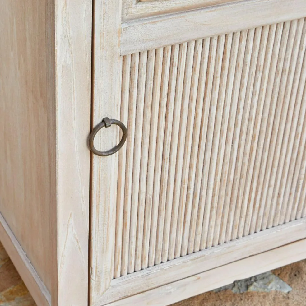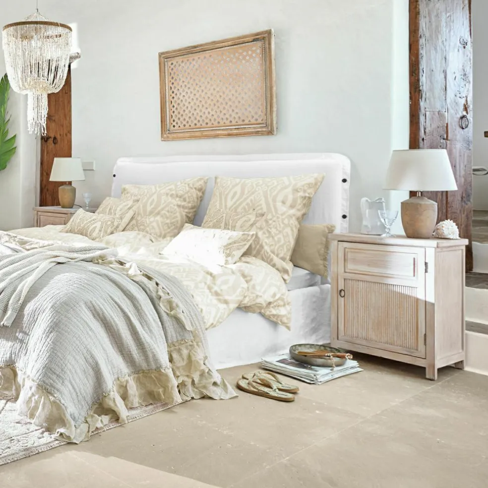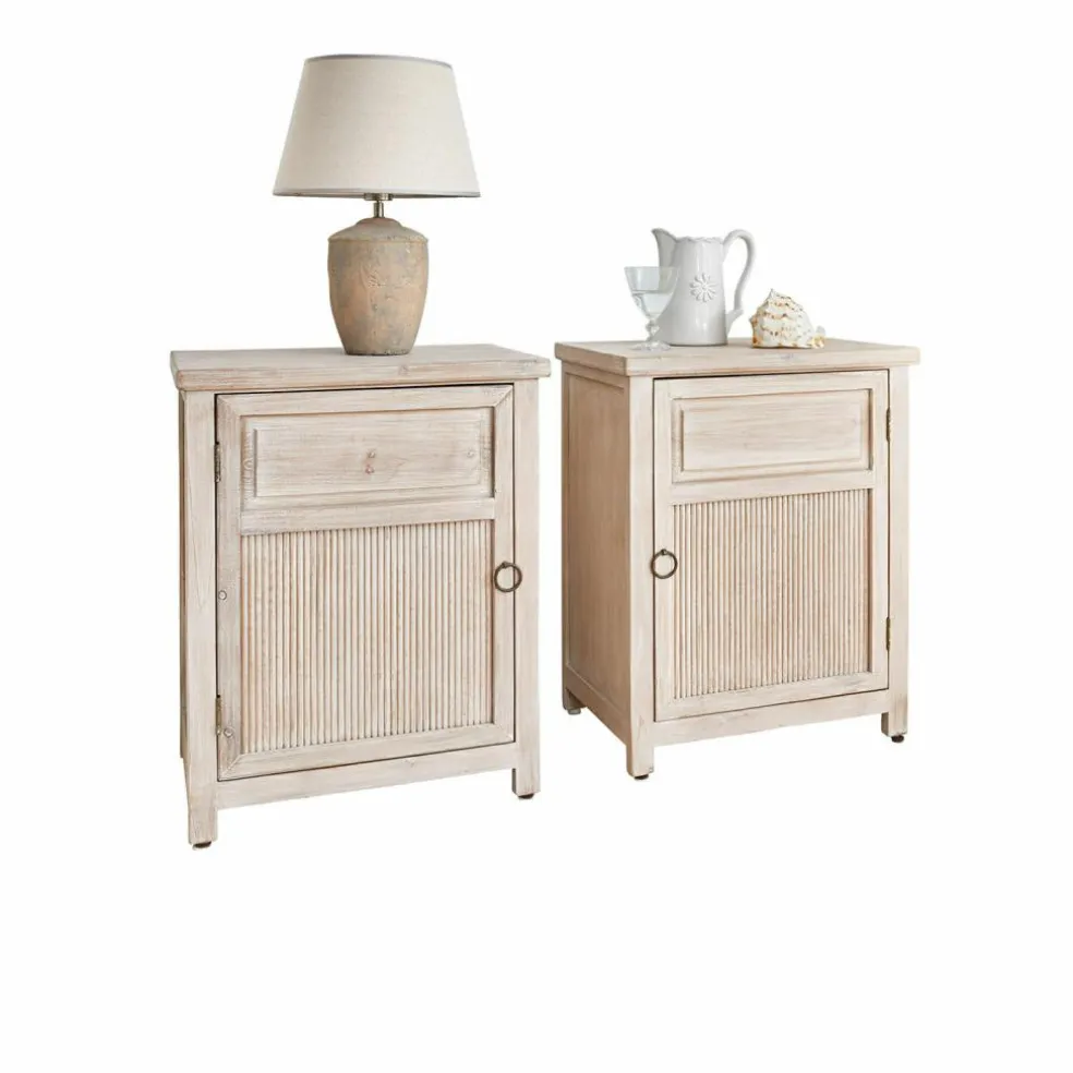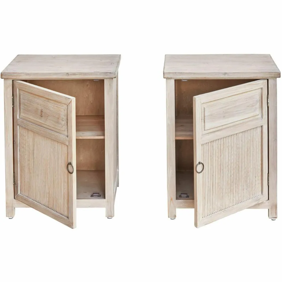Dieses Nachttisch-Set vereint Funktionalität und Ästhetik in perfekter Harmonie. Die Türen, die auf den ersten Blick wie Schubladen wirken, überraschen mit großzügigem Stauraum und einem raffinierten Bambuseinsatz, der für ein natürliches und zugleich hochwertiges Detail sorgt. Das naturbelassene Holz strahlt Wärme und Behaglichkeit aus, während die links- und rechtsseitige Türöffnung das Set perfekt für den Einsatz an beiden Bettseiten macht. Ob Bücher, Lampen oder persönliche Gegenstände – alles findet seinen Platz, und das in einem Möbelstück, das durch seinen zeitlosen Charakter lange Freude bereitet.