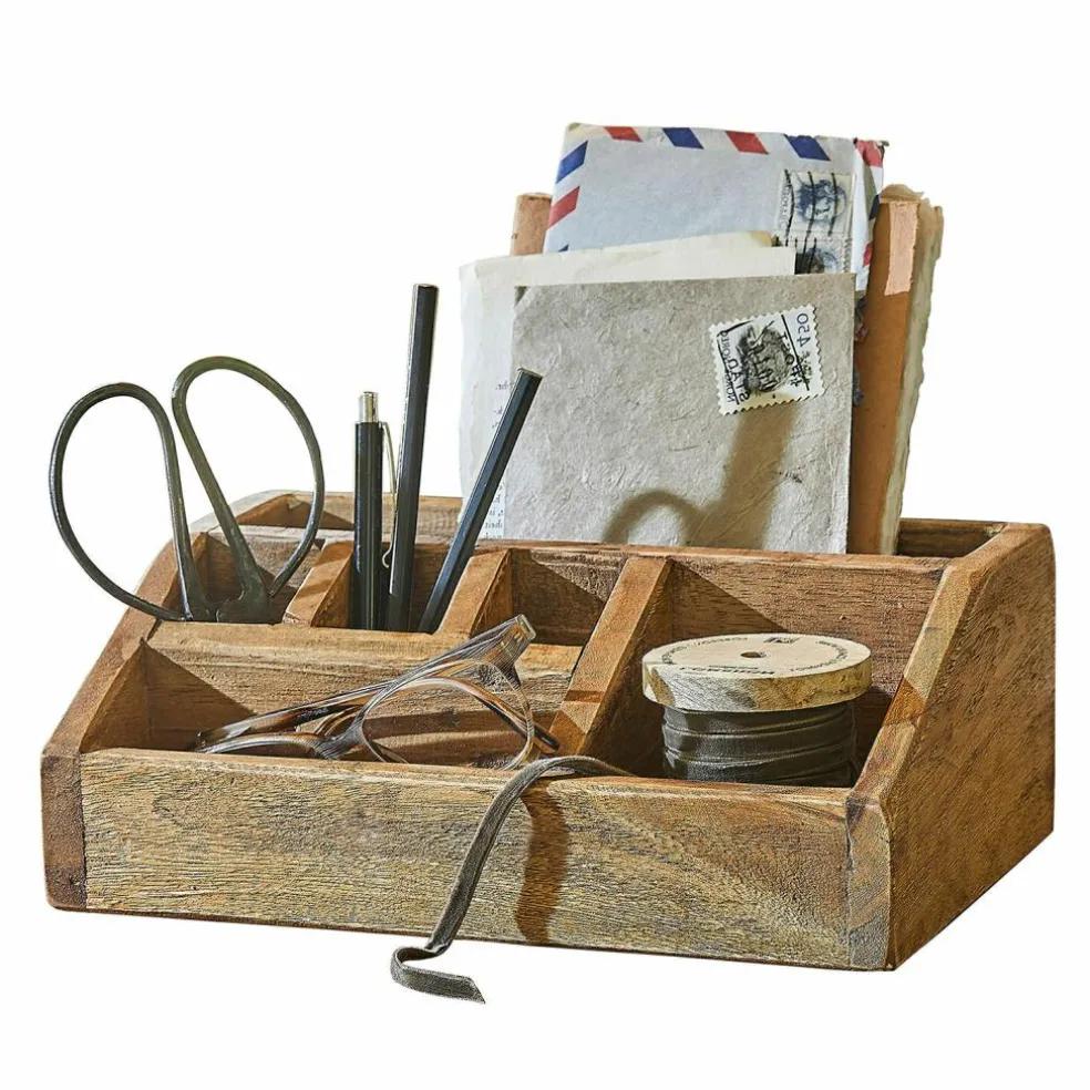 Der Organizer aus Mahagoniholz bringt Ordnung und einen Hauch von Natur auf Ihren Schreibtisch. Das warme, braune Holz strahlt eine angenehme Ruhe aus, während die charakteristische Maserung dem Stück eine besondere Note verleiht. Durch die durchdachte Anordnung der Fächer bietet dieser Organizer Platz für Stifte, Notizblöcke und kleine Büroartikel, sodass alles seinen festen Platz findet. Die robuste Konstruktion sorgt für Langlebigkeit, und das zeitlose Design fügt sich harmonisch in jede Arbeitsumgebung ein. Dieser Organizer ist nicht nur praktisch, sondern auch ein echter Blickfang – ob auf dem Schreibtisch, im Flur, in der Küche oder an anderer Stelle.