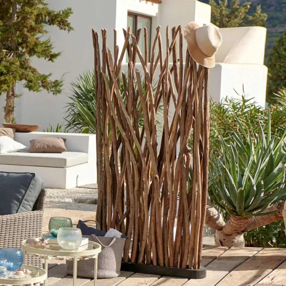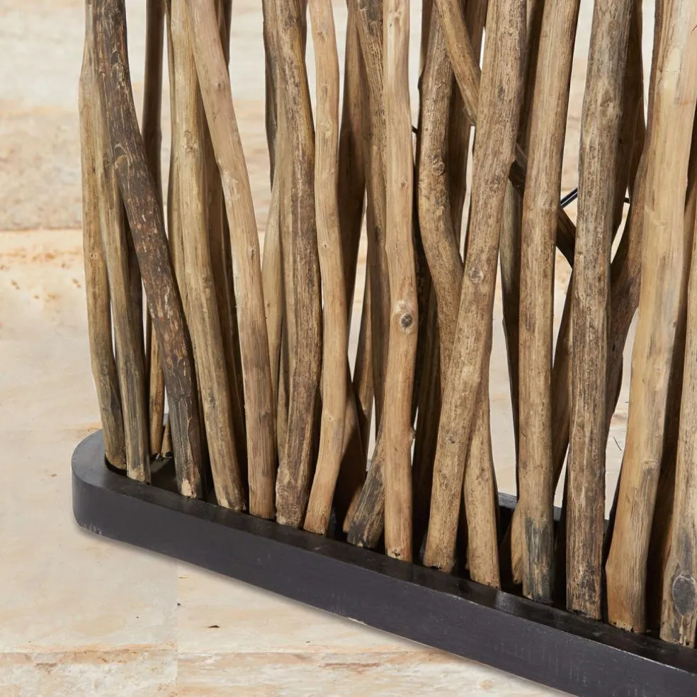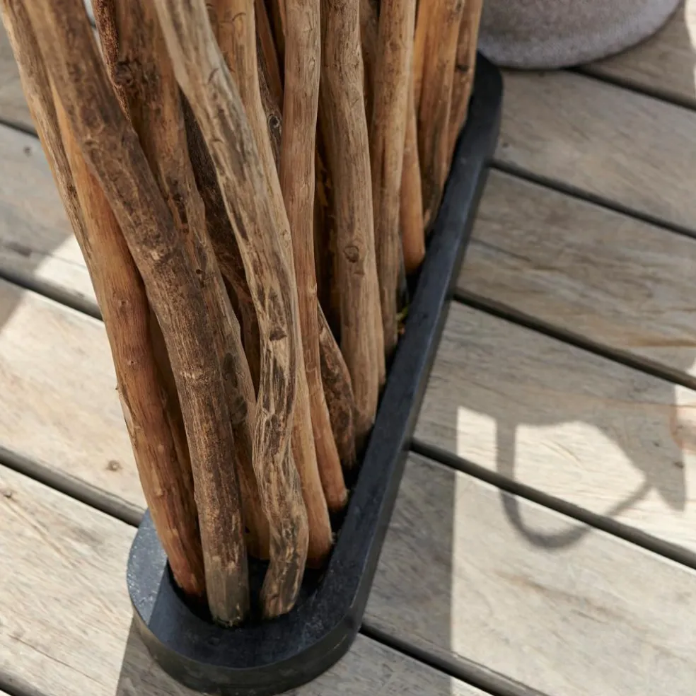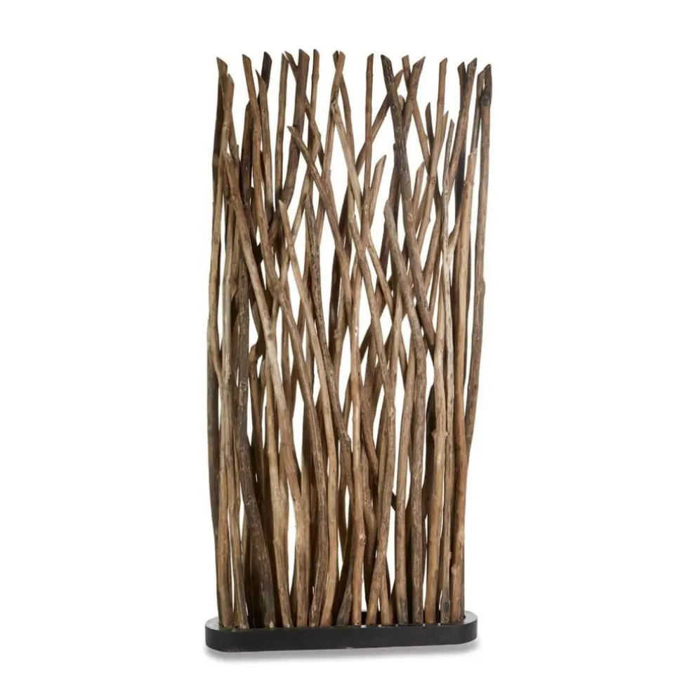 Natur pur und jedes Stück ein Unikat! Echtes Treibholz wurde für diesen Raumteiler liebevoll zusammengestellt und standfest auf eine Holzlatte montiert. Ein Kunstobjekt mit starker Aussagekraft, mit dem Sie zusätzlich Räume schaffen oder unerwünschte Blicke abwehren können. Schön auch beispielsweise, um große Fensterflächen wohnlich zu gestalten.