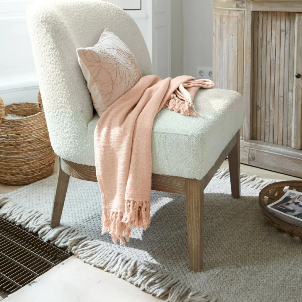 Dieses Plaid vereint Komfort und ästhetische Zurückhaltung in einem stilvollen Design. Gefertigt aus reiner Baumwolle, bietet es eine angenehm weiche Haptik, die zum Einkuscheln einlädt. Die fein gewebte Struktur verleiht dem Plaid eine natürliche Textur, die durch die zarte Farbgebung perfekt abgerundet wird. Dieses Plaid ist nicht nur ein praktischer Begleiter an kühleren Abenden, sondern auch ein dekoratives Element, das Ihren Wohnraum dezent aufwertet. Die Fransen am Rand verleihen dem Plaid einen charmanten, leicht rustikalen Touch, der für zusätzliche Gemütlichkeit sorgt.