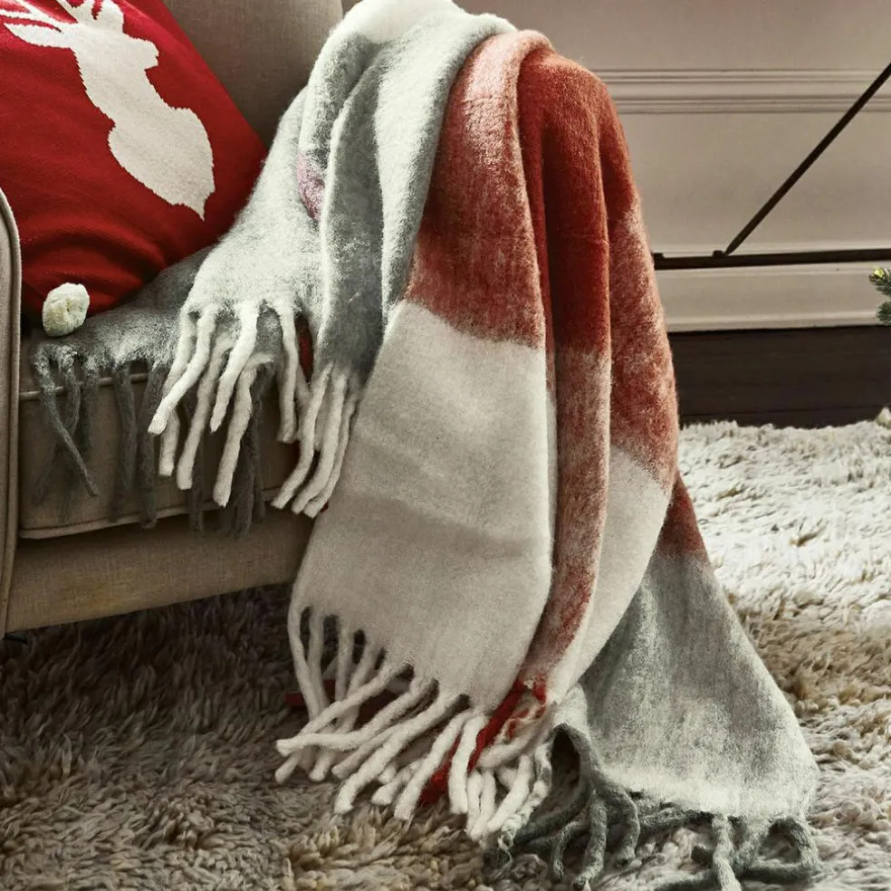 Erleben Sie einen wunderbaren Wohlfühleffekt mit unserer gewebten Plaid-Decke. Ihre angenehm weiche Haptik lädt zum Einkuscheln und Entspannen ein, während sie mit ihren stilvollen Fransen jedem Raum eine elegante Note verleiht. Der Wollanteil sorgt dafür, dass Ihnen auch an kühleren Tagen schön warm ist. Verwenden Sie die Decke als stilvollen Überwurf für Ihr Bett oder setzen Sie sie als dekoratives Accessoire auf Ihrem Sofa ein. Egal wie Sie sich entscheiden, das schicke Plaid bringt Farbe und Gemütlichkeit in Ihr Zuhause.