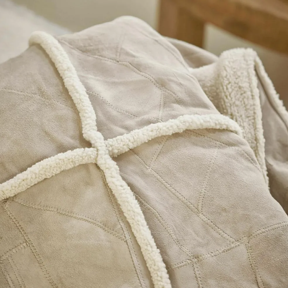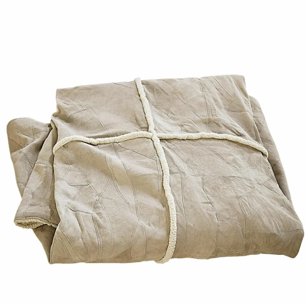 Ein Plaid, das Geschichten erzählt: Aus zahlreichen Lederstücken in zarten Naturnuancen wurde auf der Vorderseite ein kunstvolles Patchwork gefertigt – jedes einzelne Element trägt seine eigene Handschrift und verleiht der Decke ihren einzigartigen Charakter. Die natürliche Oberfläche des Leders fühlt sich angenehm griffig an und bringt Wärme in jede Einrichtung. Die Rückseite überrascht mit einem sanften Teddyfell aus Baumwolle, das sich wohlig weich an die Haut schmiegt. Diese außergewöhnliche Kombination macht das Plaid nicht nur zu einem gemütlichen Begleiter an kühlen Tagen, sondern auch zu einem stilvollen Wohnaccessoire mit Charme und Tiefe.