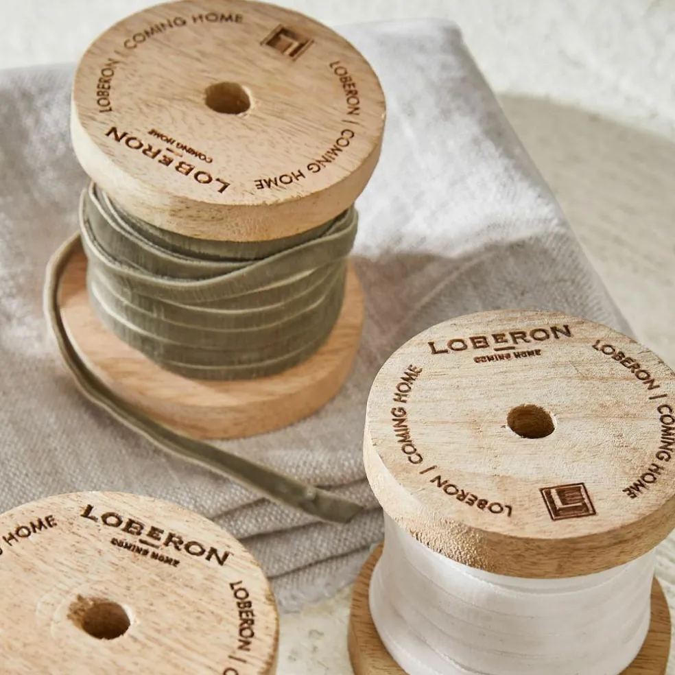 Weihnachten, Ostern, Geburtstage – nichts macht mehr Freude als zu den verschiedenen Anlässen das Zuhause kreativ zu dekorieren oder seine Liebsten mit kleinen Geschenken zu überraschen. Dafür sind individuelle Schmuckbänder einfach unverzichtbar. Dieses edle Samtband-Set in vier klassischen Farben ist allein schon durch die originelle Gestaltung ein Blickfang. Die Basis bilden vier Spulen aus massivem Mangoholz, welche mit einem dekorativen LOBERON-Aufdruck versehen sind. Zusammen auf einem Dekoteller arrangiert, sorgen die Accessoires auf dem Tisch oder der Kommode für viel nostalgischen Charme. Doch selbstverständlich können Sie mit den Samtbändern auch Ihre hübschen Päckchen wunderbar veredeln, Ihre kleinen Schmuckstücke an den Weihnachtsbaum oder Osterstrauß hängen oder Ihre Stoffservietten für die festlich gedeckte Tafel verzieren. Jedes einzelne Band ist ca. 0,6 cm breit und auch einzeln erhältlich: 21347.