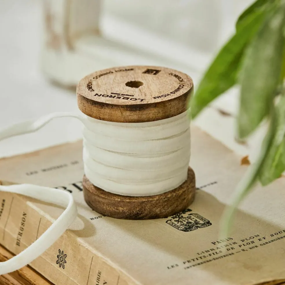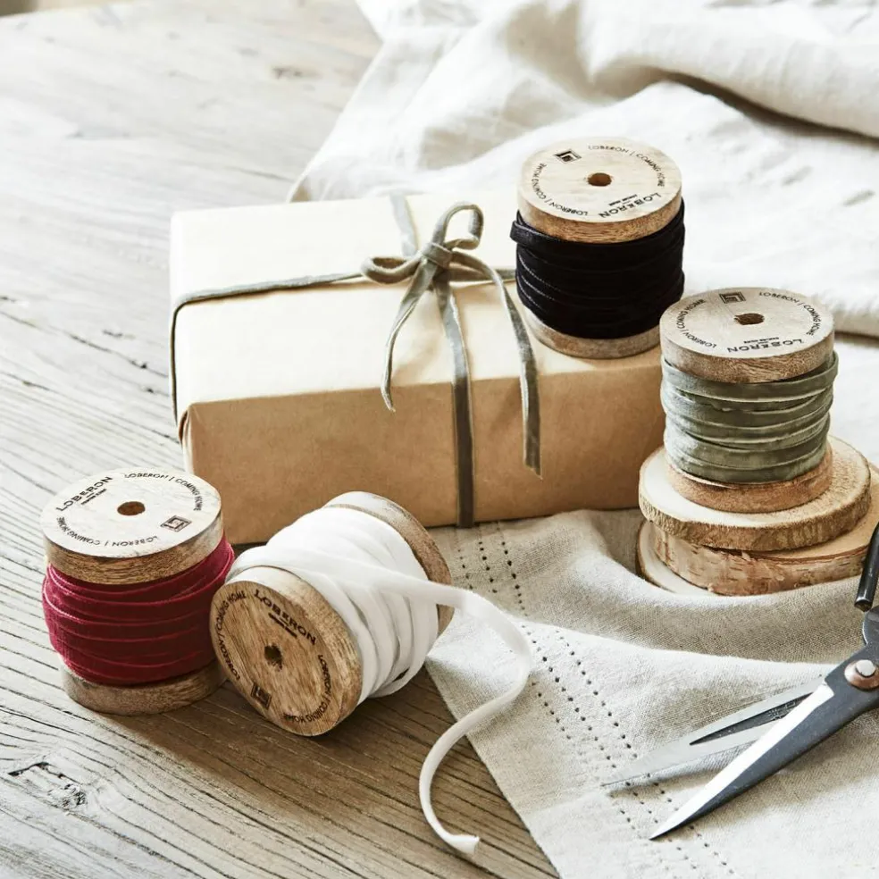 Weihnachten, Ostern, Geburtstage – nichts macht mehr Freude als zu den verschiedenen Anlässen das Zuhause kreativ zu dekorieren oder seine Liebsten mit kleinen Geschenken zu überraschen. Dafür sind individuelle Schmuckbänder einfach unverzichtbar. Dieses edle Samtband-Set in vier klassischen Farben ist allein schon durch die originelle Gestaltung ein Blickfang. Die Basis bilden vier Spulen aus massivem Mangoholz, welche mit einem dekorativen LOBERON-Aufdruck versehen sind. Zusammen auf einem Dekoteller arrangiert, sorgen die Accessoires auf dem Tisch oder der Kommode für viel nostalgischen Charme. Doch selbstverständlich können Sie mit den Samtbändern auch Ihre hübschen Päckchen wunderbar veredeln, Ihre kleinen Schmuckstücke an den Weihnachtsbaum oder Osterstrauß hängen oder Ihre Stoffservietten für die festlich gedeckte Tafel verzieren. Jedes einzelne Band ist ca. 0,6 cm breit und auch einzeln erhältlich: 21347.