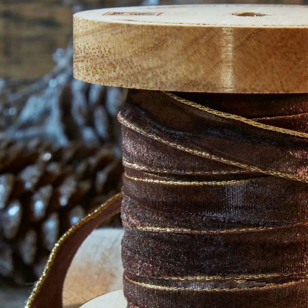 Ein Band, das mit feinen Details begeistert: Die schmale Breite von nur 0,6 cm macht es zum idealen Begleiter für filigrane Schleifen, kreative Deko-Ideen oder liebevoll verpackte Geschenke. Was es besonders macht, ist der edle Goldschimmer entlang der Ränder, der jedem Arrangement einen festlichen Hauch verleiht – dezent, aber wirkungsvoll. Geliefert wird das 10 Meter lange Band auf einer charmanten Rolle aus Mangoholz, die nicht nur Ordnung schafft, sondern auch ein dekorativer Blickfang in jeder Kreativecke ist.