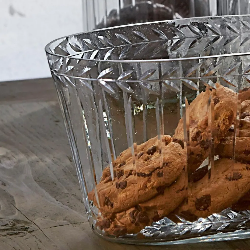Wir lieben diese Schale! Ihre schlichte Eleganz, die charmante Form und ihre handgearbeitete Qualität, haben es uns angetan. Dieses Schmuckstück ist der Beweis dafür, dass hochwertiges Geschirr nicht teuer sein muss. Die bezaubernde Oberflächenstruktur verleiht der Schale ihren klassischen Charme. Besonders der feine Glasschliff entlang des Randes, weiß absolut zu begeistern. Das perfekte Geschirr, um stilvoll Brot, Chips oder andere Leckereien zu servieren.