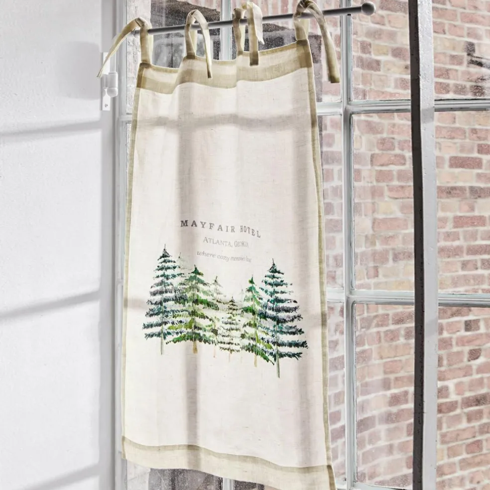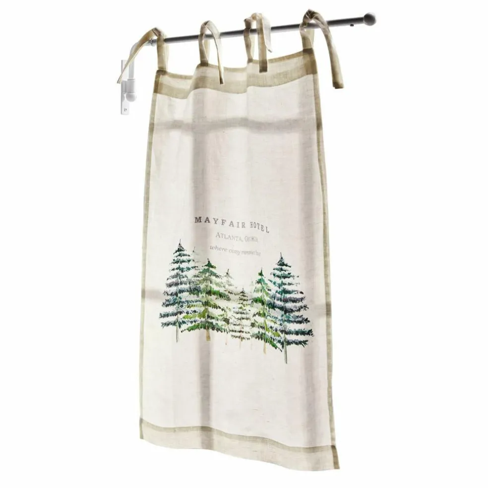 Holen Sie sich das Flair eines heimeligen Hotels im Winterwald nach Hause – der detailverliebte Druck macht genau darauf richtig Lust. Diese schöne Scheibengardine aus reinem Leinen ist klassisch gestaltet und passt ideal zum Landhaus-Stil. Träumen Sie sich hiermit in eine amerikanische Land-Idylle, ganz ohne zu verreisen. Vor allem in der kalten Jahreszeit versprüht sie ihren Charme und ziert kleinere Fenster, vielleicht in Bad und Küche. So kommt ein gemütlicher Akzent wie auch zugleich ein charmanter Sichtschutz zu Ihnen. Dank hübscher Bindebänder lässt das feine Design sich sehr leicht an einer Gardinenstange befestigen.
