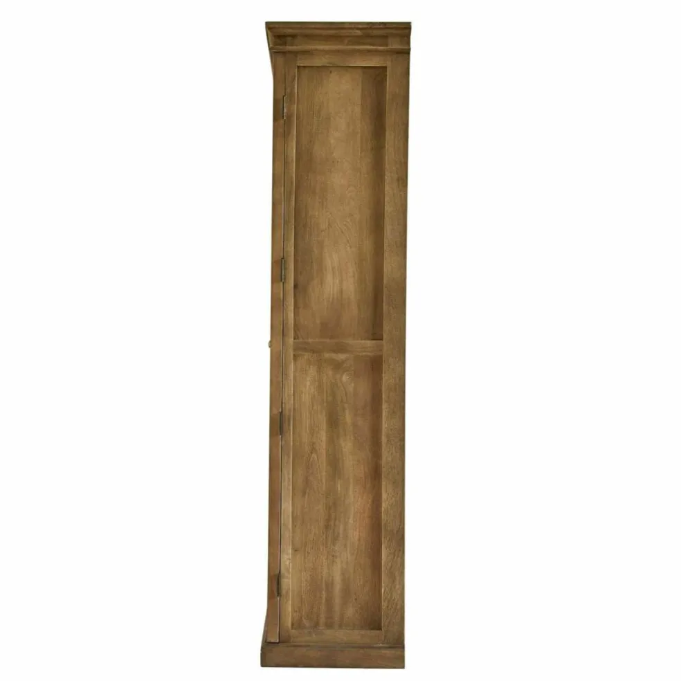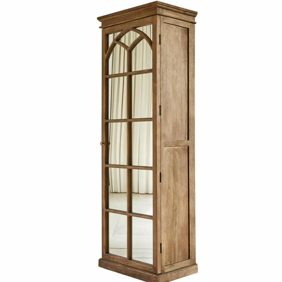 Tauchen Sie ein in die Welt des rustikalen Charmes mit diesem exquisiten Spiegelschrank aus naturbelassenem Mangoholz. Der Schrank besticht durch seine einzigartige Kombination aus natürlichem Holz und einem antikgrauen Innenfinish, das einen faszinierenden Farbkontrast bildet. Die Spiegeltür ist mit einem dekorativen Fensterkreuzmuster versehen, das nicht nur ästhetisch ansprechend ist, sondern auch für eine hellere und offenere Raumwirkung sorgt. Im Inneren bietet der Schrank praktische Regalböden, die reichlich Platz für Ihre persönlichen Gegenstände bieten. Die Rückwand in Latten-Optik verleiht dem Inneren des Schranks zusätzlichen Stil und Charakter. Ob im Wohnzimmer, Schlafzimmer oder Flur – dieser Spiegelschrank ist ein funktionales und dekoratives Highlight, das jeden Raum bereichert.