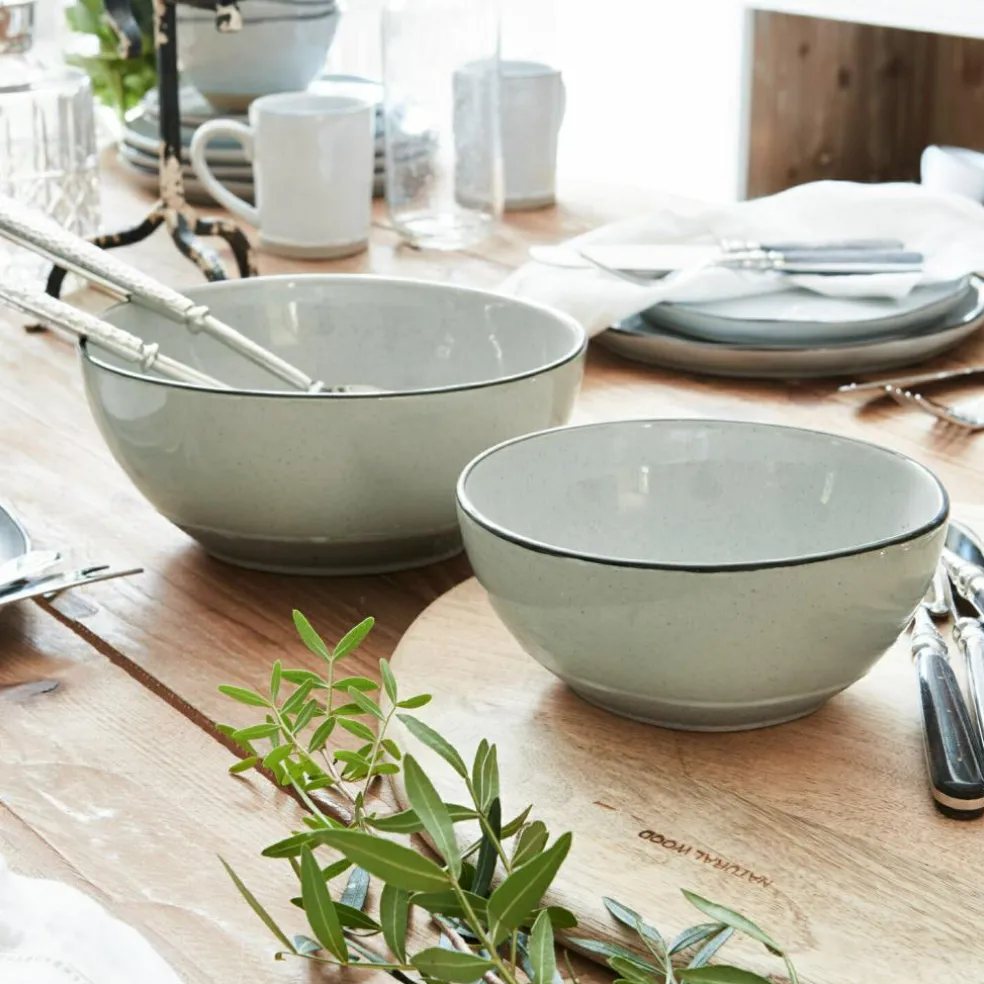 Dieses exquisite Set ist nicht nur für Salate, Suppen und Vorspeisen ideal. Es handelt sich um zwei unterschiedlich große Schüsseln aus feinem Steinzeug. Sie sind lebensmittelecht und sehr leicht zu reinigen. Es handelt sich um dieselbe Top-Qualität, die auch in professionellen Küchen zum Einsatz kommt. Die mediterran angehauchten Schüsseln sind stapelbar und somit äußerst platzsparend. Ihr schlichtes Design harmoniert mit den unterschiedlichsten Geschirrsets und ihr feiner Glanz ist eine optische Bereicherung für jede Tafel.
