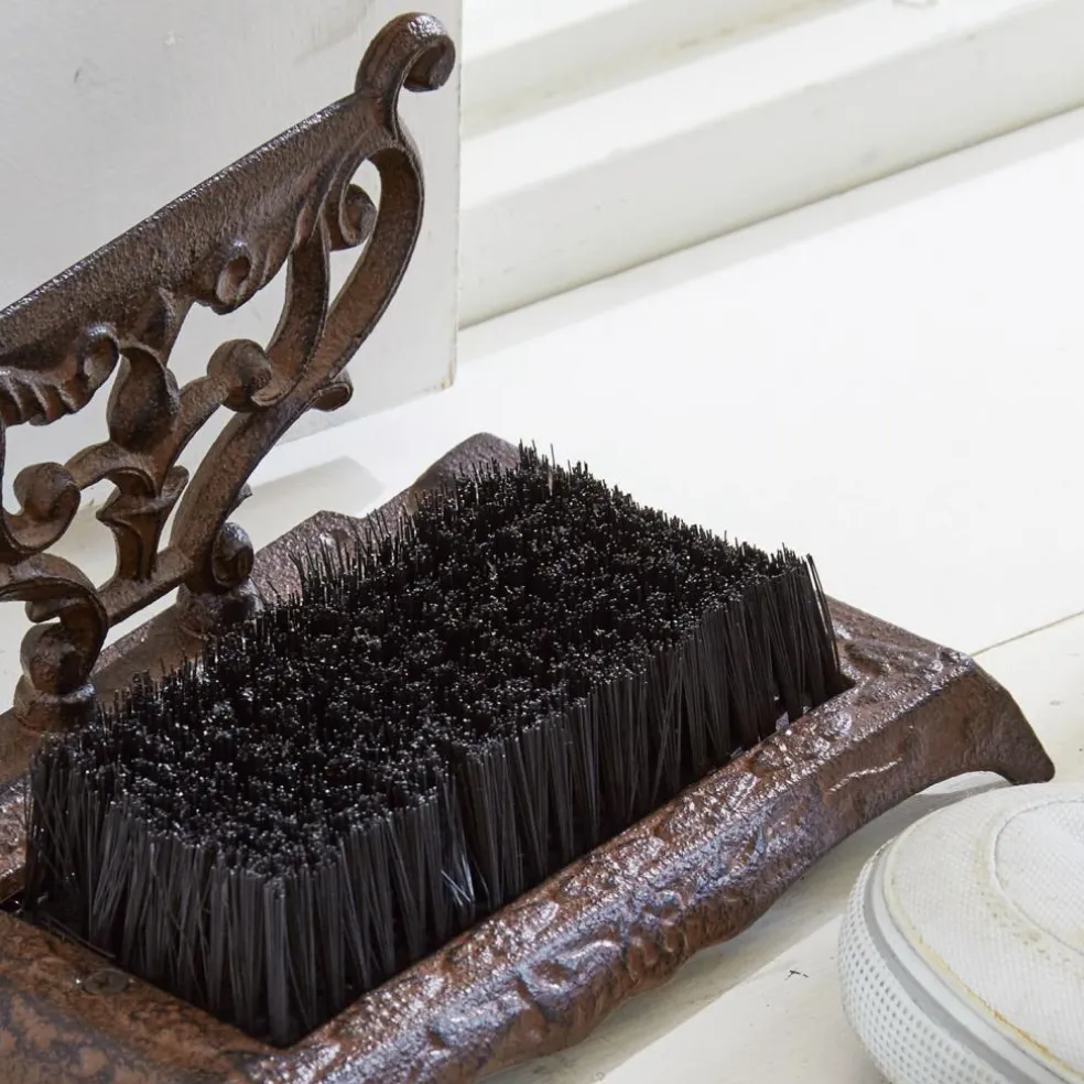 Wie ein seltener Fund von einem verwunschenen Dachboden: Dieser wunderschöne Schuhabstreifer versprüht pures Vintage-Flair. Er erscheint wirklich wie ein Stück aus alten Zeiten und wird alle Freunde des Shabby-Chic begeistern. Das authentische Design aus Gusseisen mit Antik-Finish ist ebenso dekorativ wie nützlich. Säubern Sie mit der Bürste aus Nylon Ihre Schuhe, oder lassen Sie ihn einfach als Dekoration wirken. Bei Bedarf wechseln Sie die Bürste einfach aus – eine Wechselbürste ist bereits inklusive. Ein zauberhaftes Accessoire und auch eine individuelle Geschenkidee für Freunde.