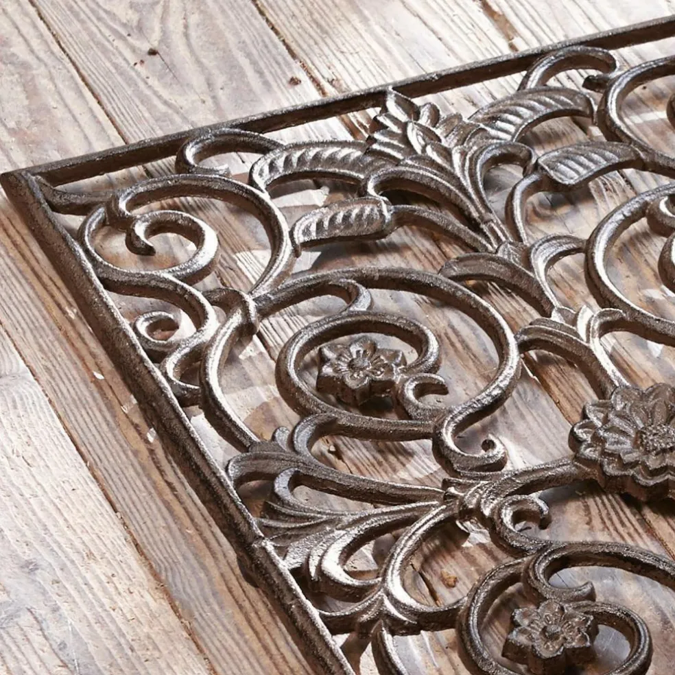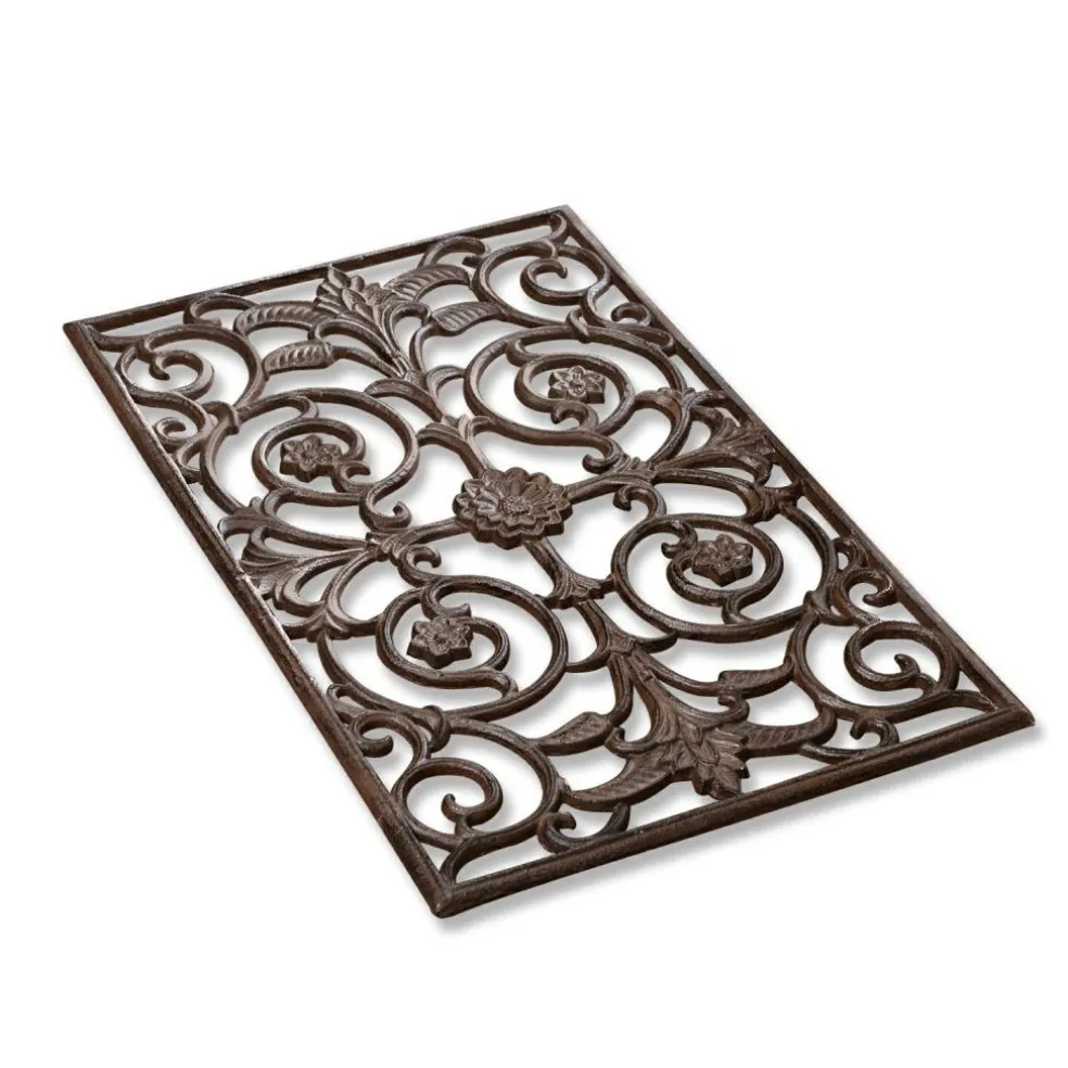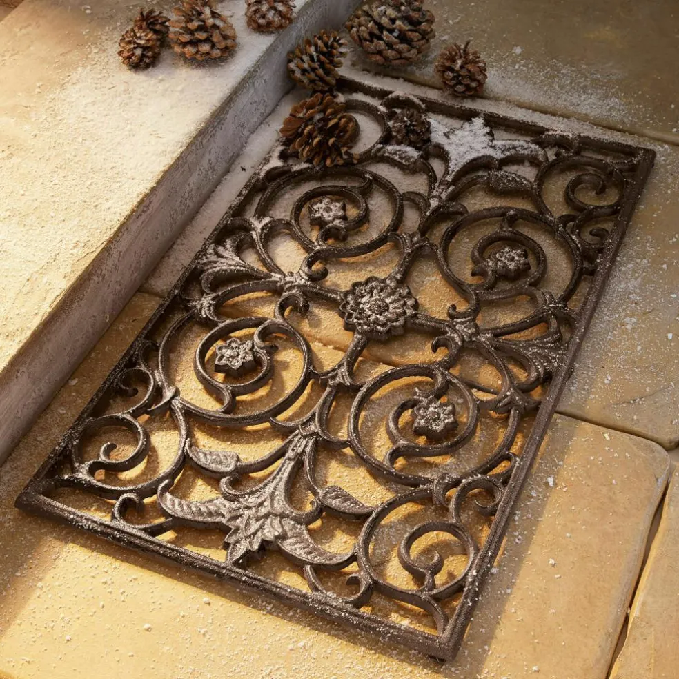 Es gibt unauffällige Schuhabstreifer, es gibt witzige Schuhabstreifer und es gibt extravagante Schuhabstreifer. Elegante Modelle, die sich an klassischen Vorbildern orientieren, findet man aber leider nur noch selten. Umso begehrenswerter erscheint dieses Modell, das aus reinem Gusseisen gefertigt und wundervoll verziert wurde. Die raffinierten Muster kommen durch die Veredelung der Oberfläche besonders hübsch zur Geltung.