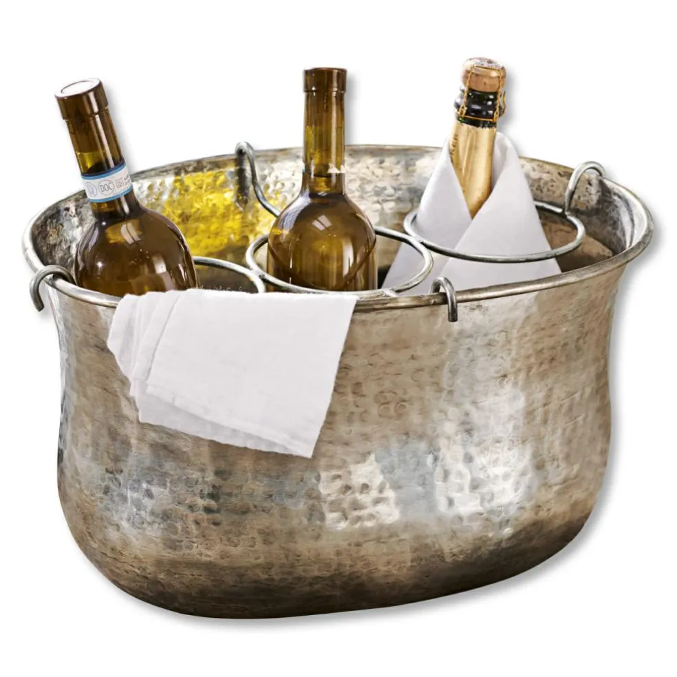 Eh klar – Weißwein, Prosecco und ein Fläschchen Mineralwasser sollten Sie am besten immer gekühlt servieren. In drei verschiedenen Flaschenkühlern wirkt das natürlich nur bedingt elegant oder gar stilvoll. Der Erfinder dieser edlen Wanne hat daher – unserer Meinung nach – definitiv einen Orden verdient. Im herausnehmbaren Einsatz finden gleich drei Flaschen nebeneinander Platz und Halt zugleich. Und damit nicht genug: Das oval geformte Messingbehältnis wurde darüber hinaus in Hammerschlagtechnik Handgefertigt und abschließend mit einem edlen Finish in Antiksilber versehen. So schmeckt selbst Sekt nach Champagner – probieren Sie es aus.