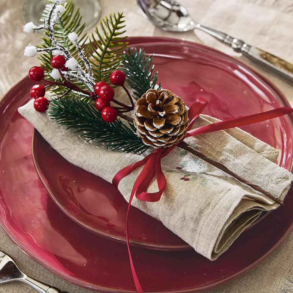 Dieses hübsche Quartett von vier Servietten aus reinem Leinen ist romantisch und nostalgisch mit feinen Stechpalmen- und Mistelzweigmotiven bedruckt. Der hochwertige Stoff ist bakterienhemmend und waschbar, sodass diese edlen Servietten immer angenehm frisch und sauber sind. Das attraktive Design ist umweltfreundlich und immer wieder verwendbar, sodass Sie sich das ganze Jahr oder besonders zum Fest darüber freuen können. Sie bilden ein harmonisches Detail in einem Landhaus-Ambiente und machen Ihre Tafel zum Frühstück, dem großen Festessen oder einfach zum Brunch mit den Lieben zu einem gemütlichen und stilsicher gedeckten Ort, an dem alle gern zusammenkommen.
