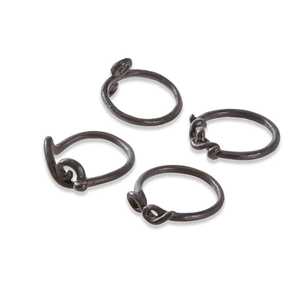 Könnte Ihr Esstisch ein bisschen rustikales Flair vertragen? Wenn ja, sollten sie unbedingt dieses Serviettenring-Set in ihre Gedecke integrieren. Die gusseisernen Schmuckstücke sind sehr kunstvoll geformt und haben eine wunderbare Patina, die im Laufe der Jahre immer schöner wird. Jedes Stück weist eine andere Form und Verzierung auf und dennoch harmonieren die Ringe ganz wunderbar miteinander. Die Ringe sind ideal für Stoffservietten jeglicher Couleur. Sie verleihen ihrer Tafel eine einladende Note und fügen sich sehr schön in unterschiedlichste Geschirr-Sets und Tischdekorationen ein.