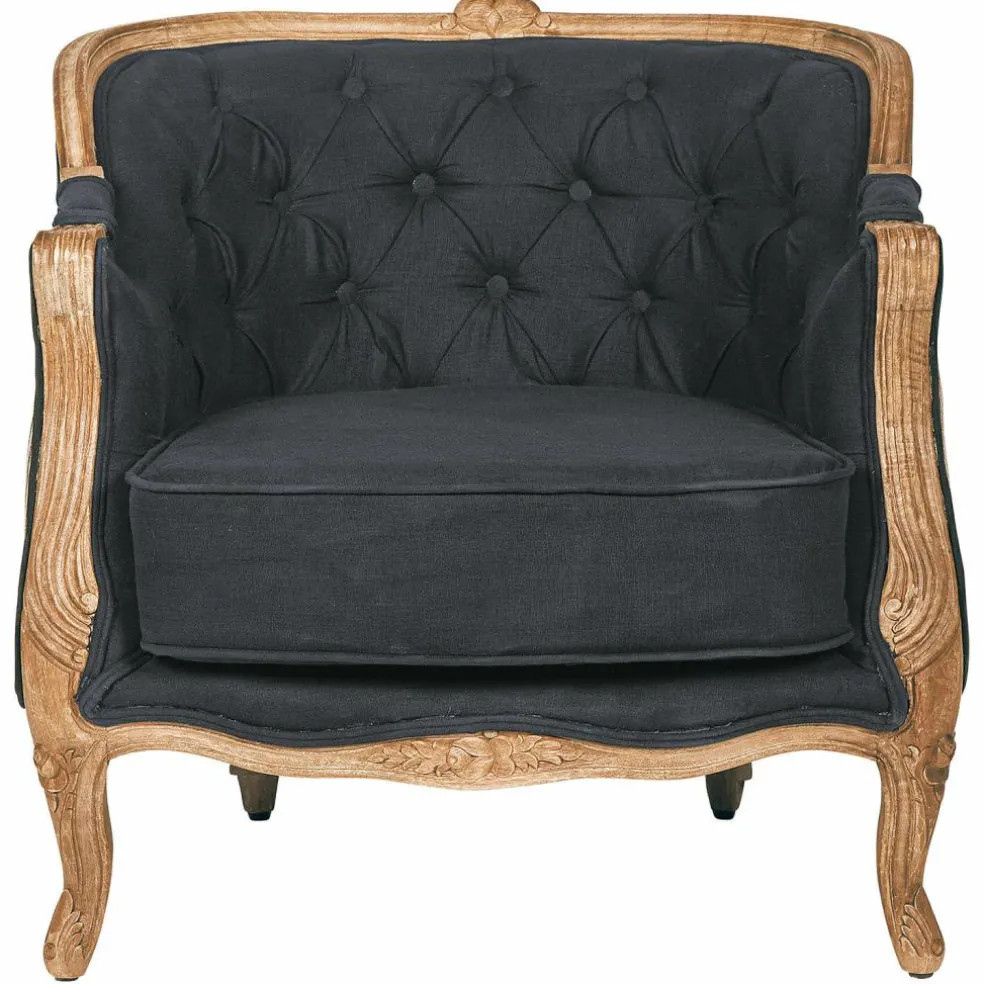 Über Sie am besten schon mal den Knicks vor dieser Hoheit. Denn dieser Sessel hat definitiv das Zeug zur Krönung Ihres Zuhauses. Vorbild des Designs sind die berühmten Sessel der Rokoko-Zeit – denn alle stiltypischen Details des 18. Jahrhunderts finden sich in in diesem Sessel vereint. Der geschwungene Rahmen aus edlem Mangoholz weist liebevolle Verzierungen und feine Schnitzereien auf, die Füße und das antike Finish setzen den historischen Look konsequent fort. Eine Neuinterpretation des Stils ist dagegen der schöne Bezug. Sie haben hier die Wahl zwischen Leinen und Samt. Der Bezug kommt ganz ohne Schnörkel aus, besitzt jedoch einen zierenden Keder, der vor allem das Sitzkissen hübsch einrahmt. Die hochwertige Schaumstoffpolsterung und das extra Sitzkissen sorgen dafür, dass der Sessel auch nach längerem Sitzen immer komfortabel bleibt. Als prägendes Stilelement fungieren die besonders großen Nagelköpfe der klassischen Chesterfield-Steppung. Typisch für die Sessel und Sofas des Rokoko.