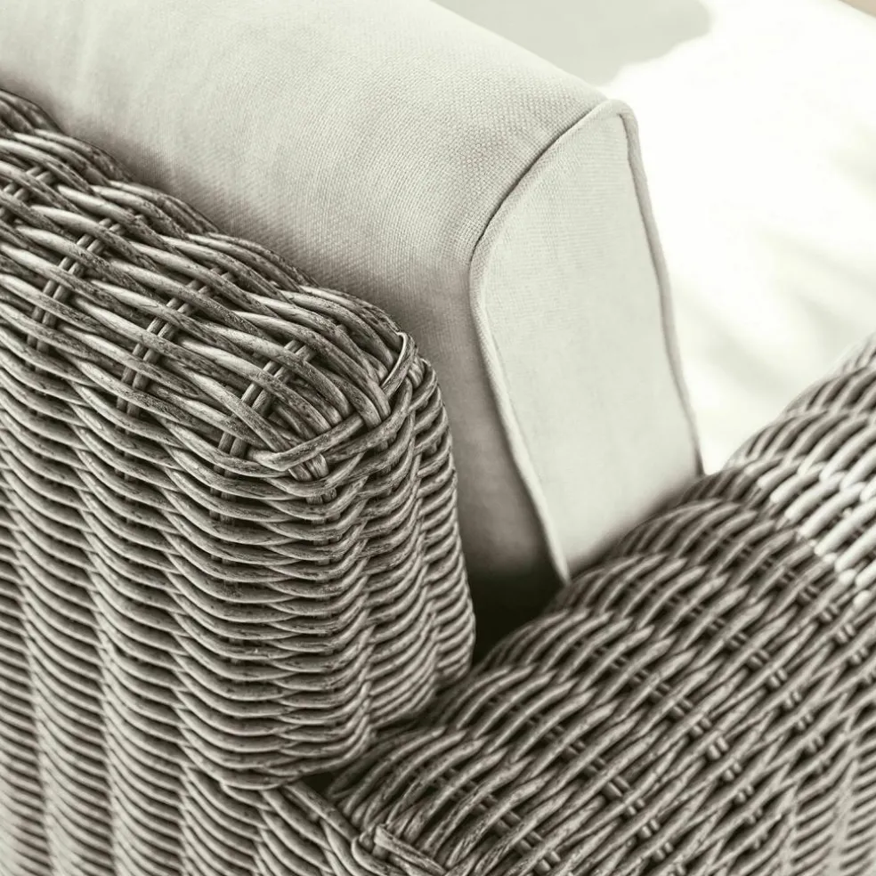 Genießen Sie es auch so sehr, dass die Sommer nördlich der Alpen mediterrane Qualitäten entwickeln und noch öfter dazu einladen, möglichst viele schöne Momente unter freiem Himmel zu genießen? Dann sollte in Ihrem Outdoor-Bereich aber auch ein Sessel wie dieser hier nicht fehlen. Denn diesem Sessel gelingt die perfekte Verbindung von exklusivem Design und bester Wettertauglichkeit. Mit seinen großzügigen Maßen und der niedrigen Sitzhöhe verbreitet der Sessel entspanntes Lounge-Feeling, während das robuste Polyrattan-Geflecht mit ausgezeichneter Wetterfestigkeit punktet. Es wurde in traditioneller Handwerkstechnik um ein stabiles Alu-Gestell geflochten, so dass der Sessel mit einem stattlichen Gewicht von 120 kg belastet werden kann. Die komfortabel dicken Kissen haben einen Bezug aus einem strapazierfähigen Polyestergewebe und können sogar abgezogen und gewaschen werden. Tipp: Im gleichen Look gibt’s ein großes Sofa (21926) oder eine komplette Sitzgruppe mit Sofa und 2 Sesseln (22039).